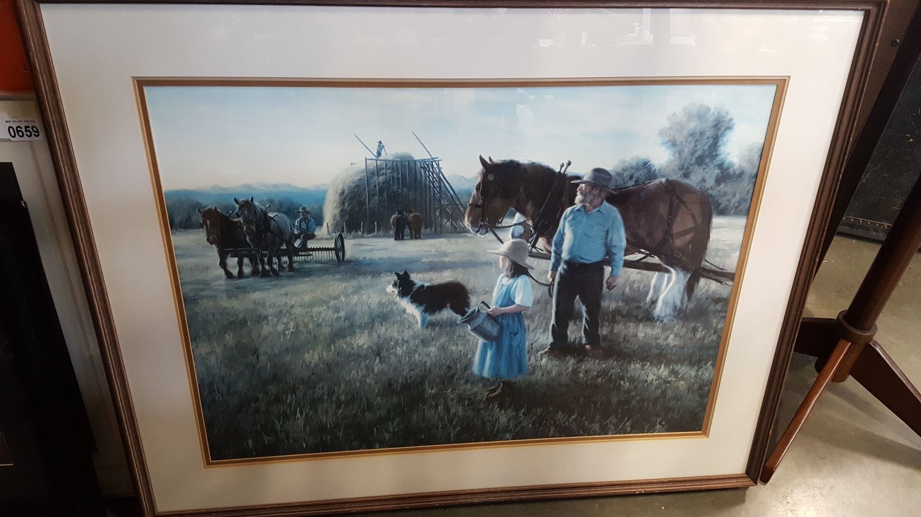 FRAMED FARM SCENE PICTURE, RON PARKER, HAY TIME