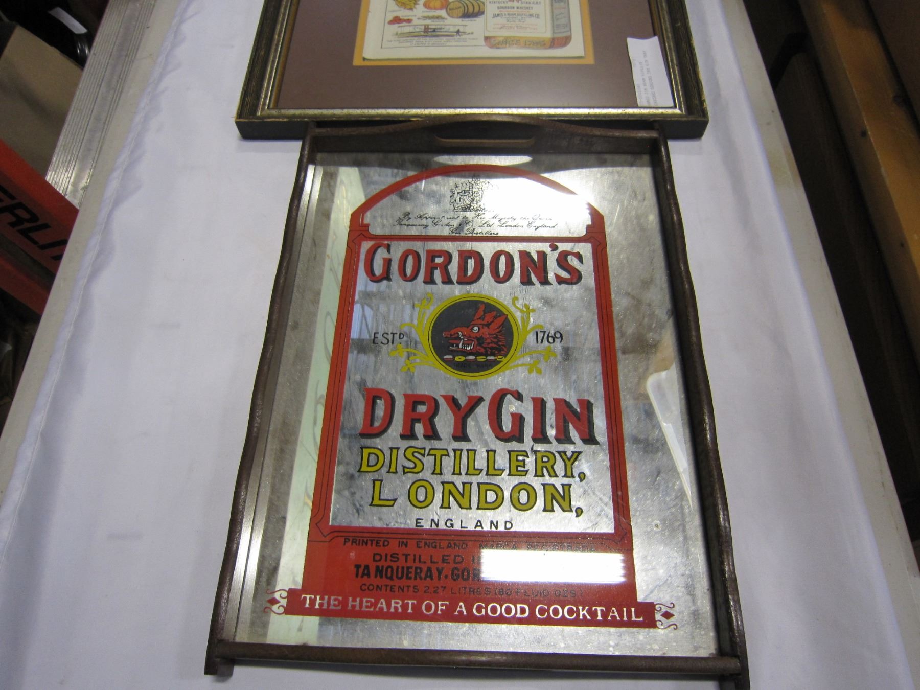FRAMED JIM BEAM RIPLEYS MIRRORED GORDONS DRY GIN TRAY