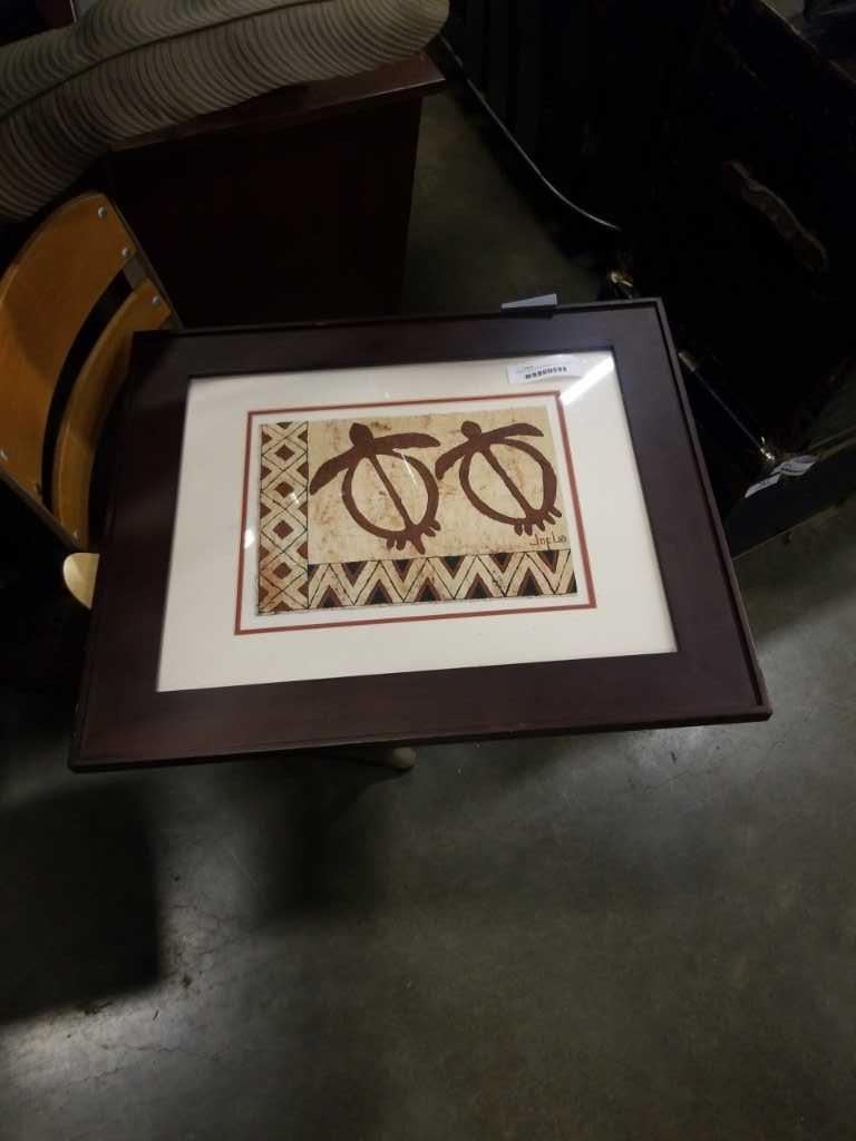 FRAMED KAPA PAINTING BY JOEL P HEINZ SR. WITH INFO ON BACK SAID TO BE WORTH $1300