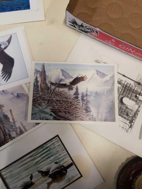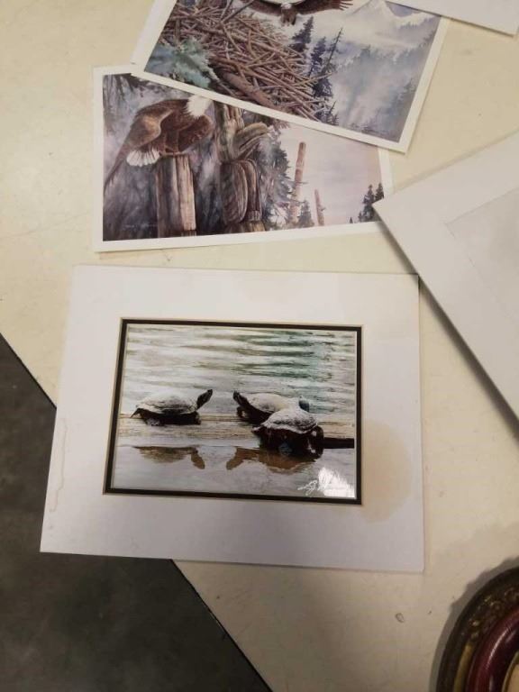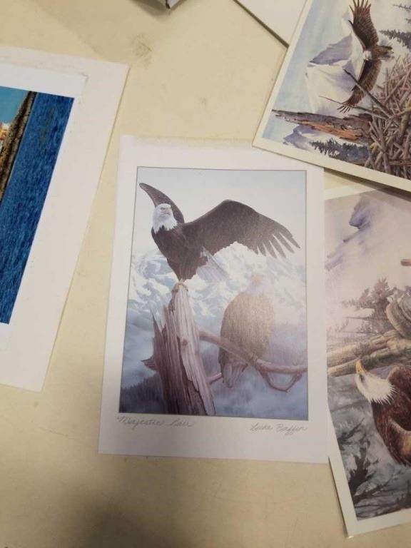 FRAMED PETIT POINT AND PRINTS - LUKE RAFFIN AND SUE COLEMAN EAGLE PRINTS AND OTHERS