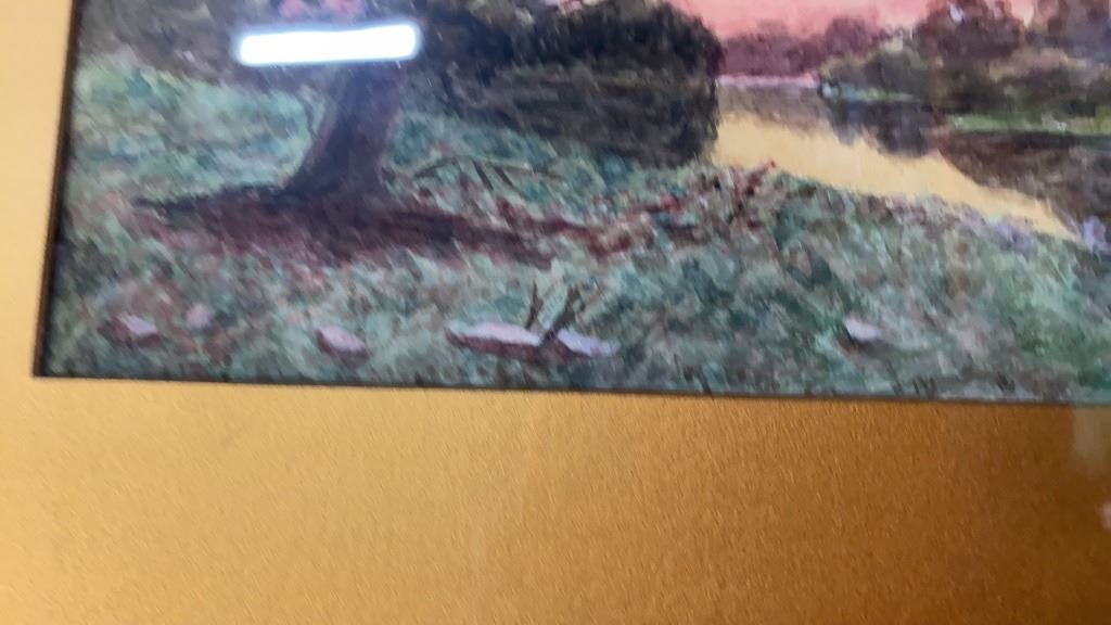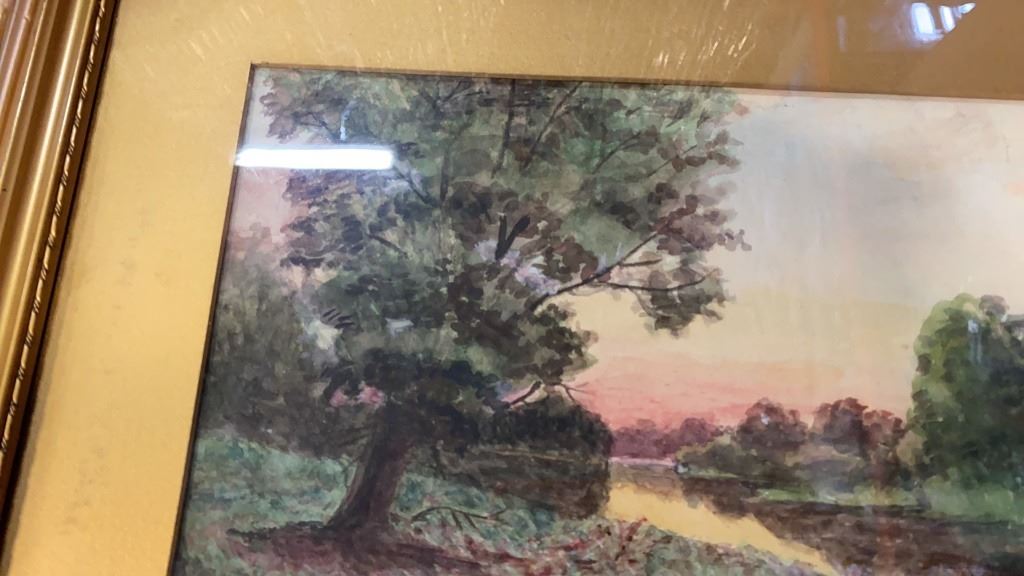 FRAMED WATERCOLOR AND NEEDLEPOINT