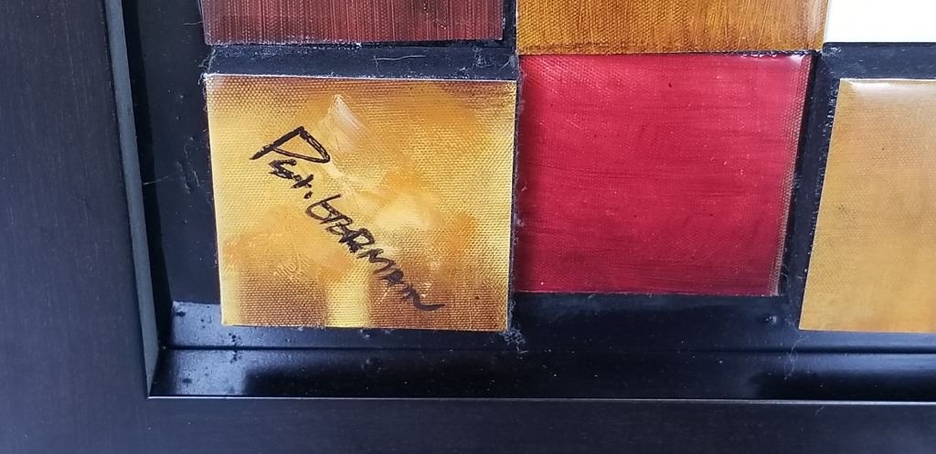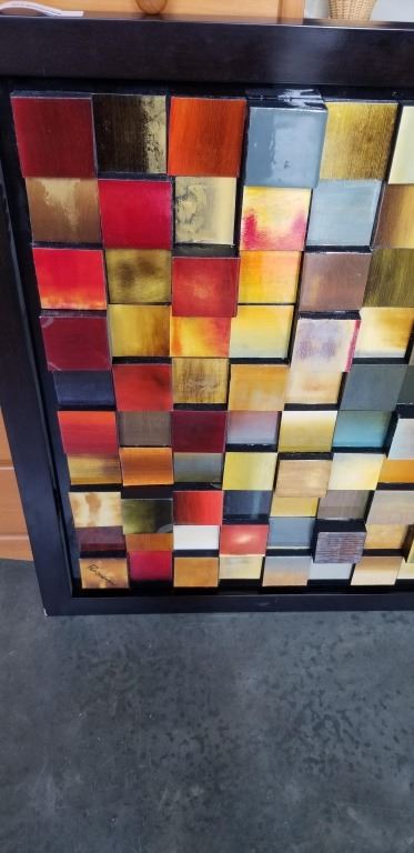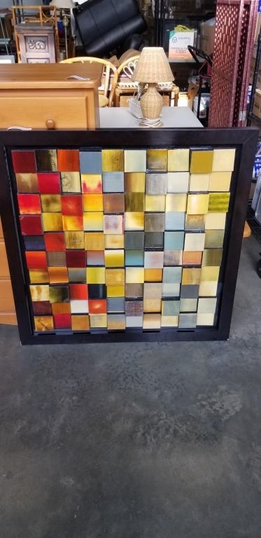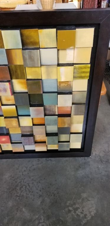 FRAMED WOOD BLOCK ART WALL HANGING, 40 X 40 INCH
