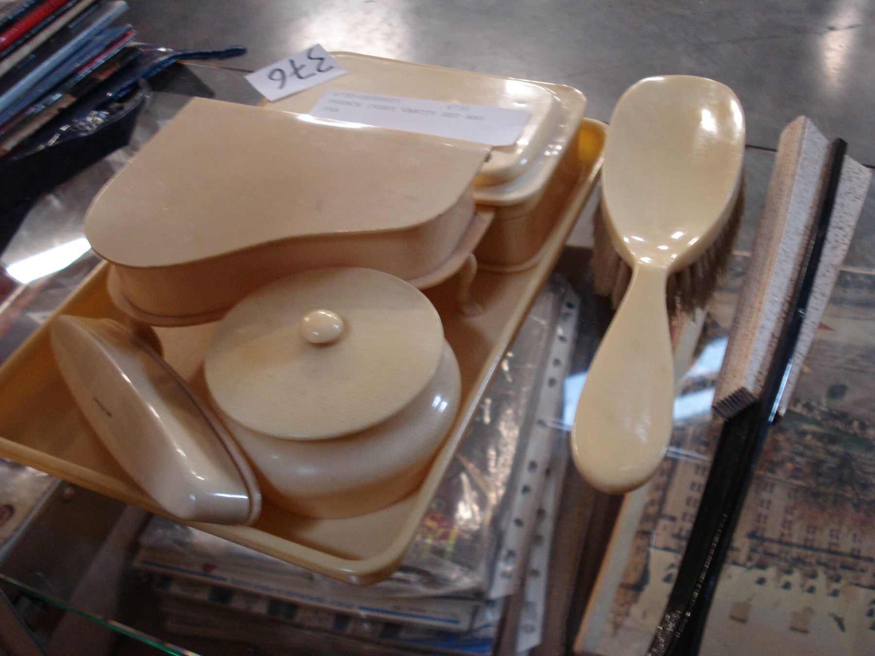 FRENCH IVORY VANITY SET AND FAN