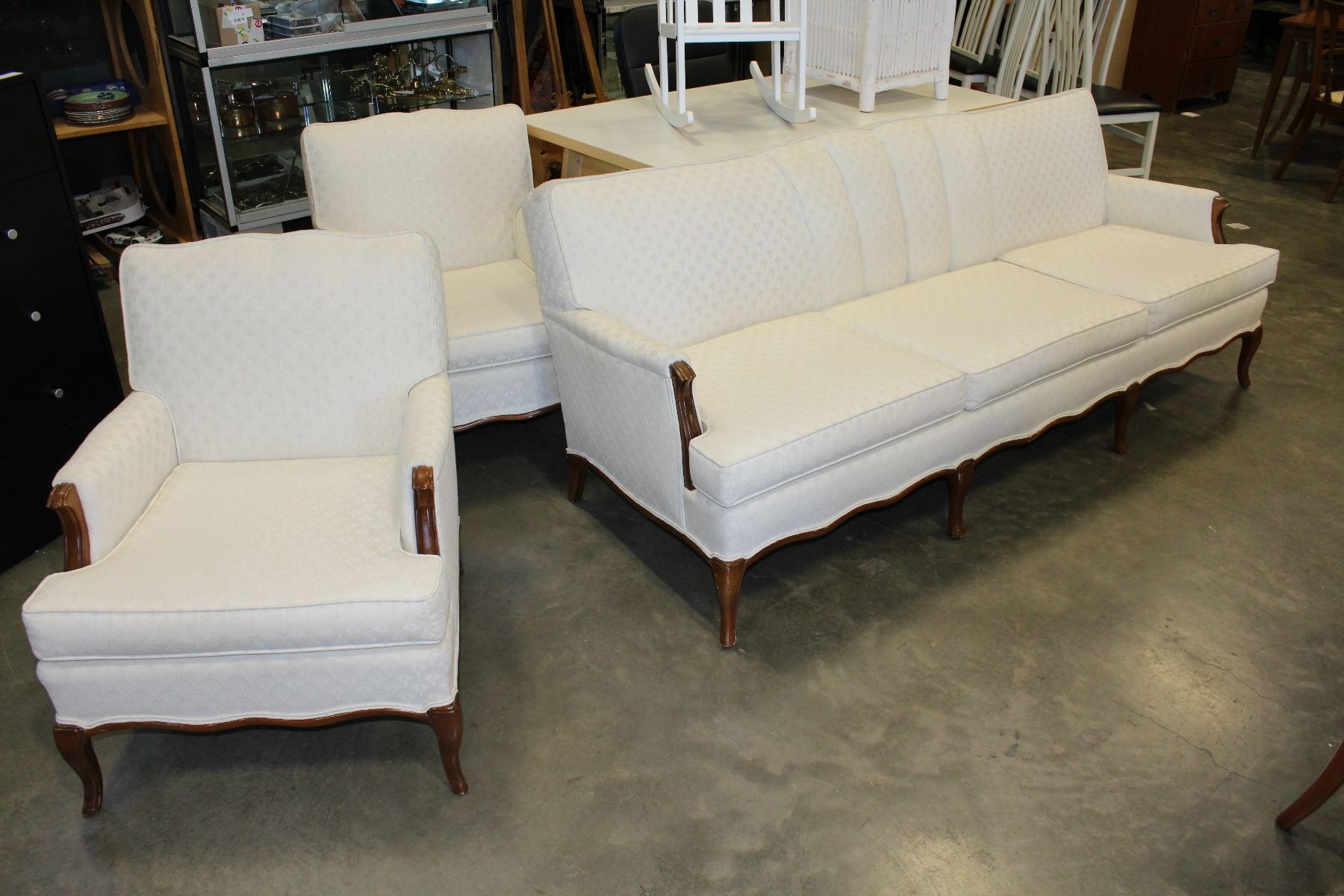 FRENCH PROVINCAL SOFA AND TWO CHAIRS