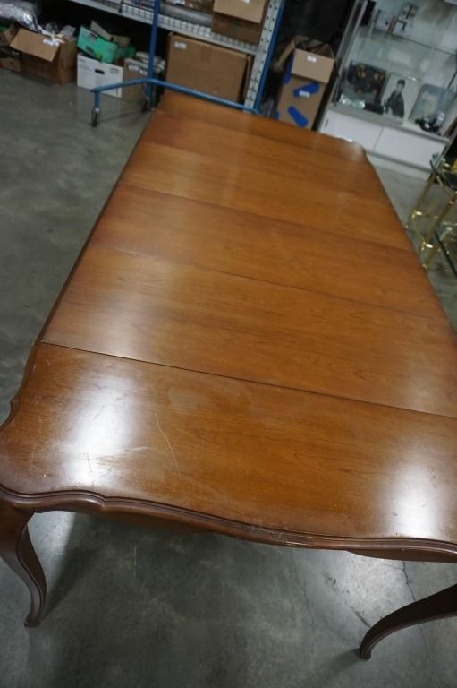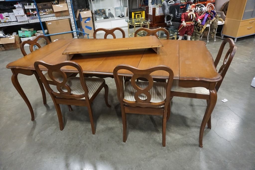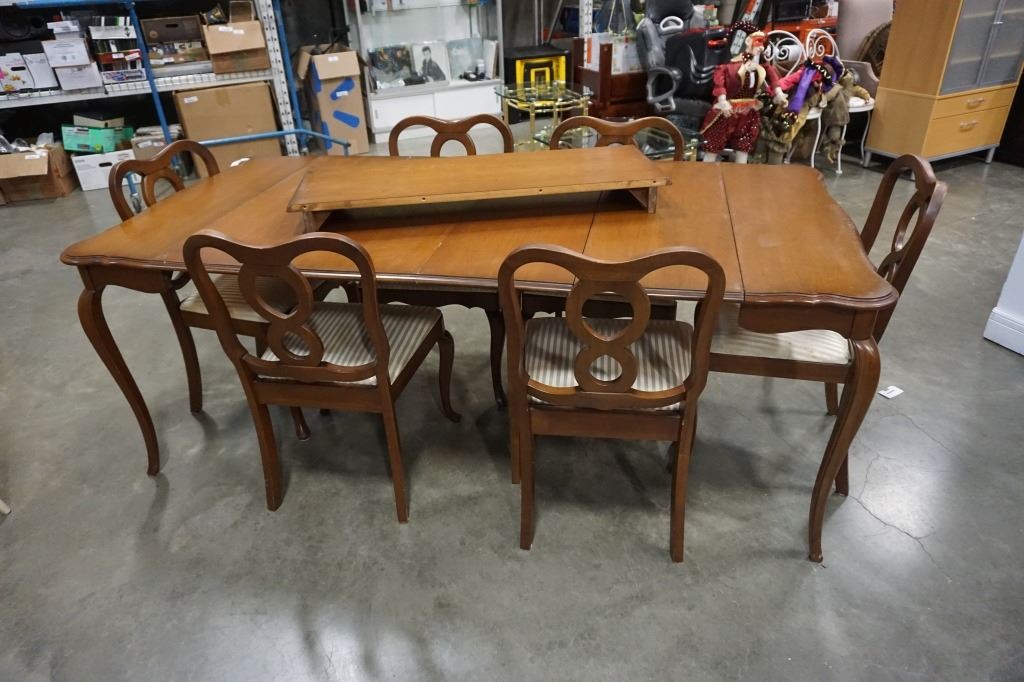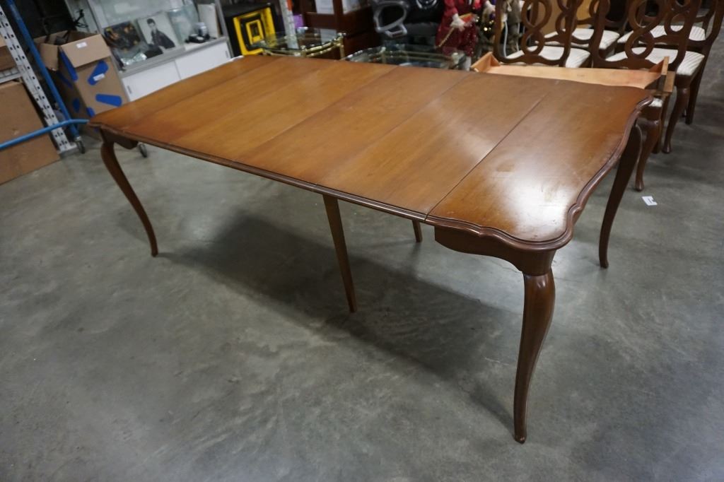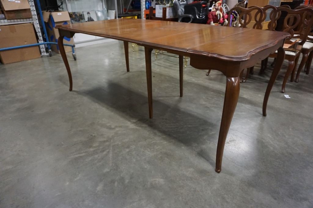 FRENCH PROVINCIAL DINING TABLE WITH 5 LEAFS AND 6 CHAIRS