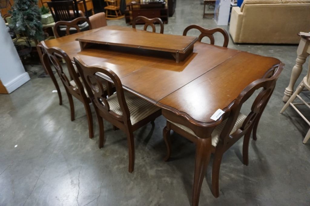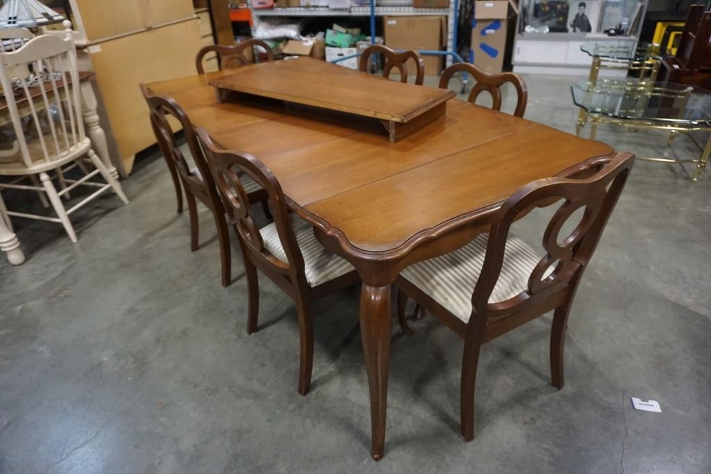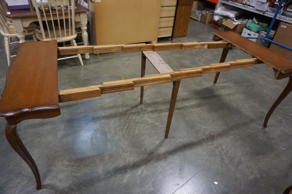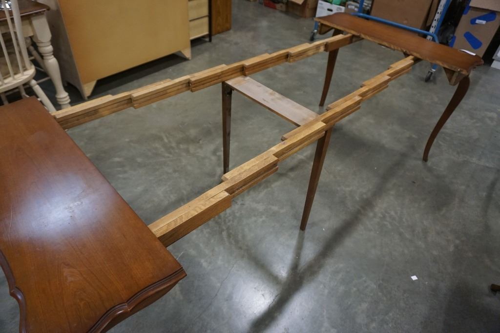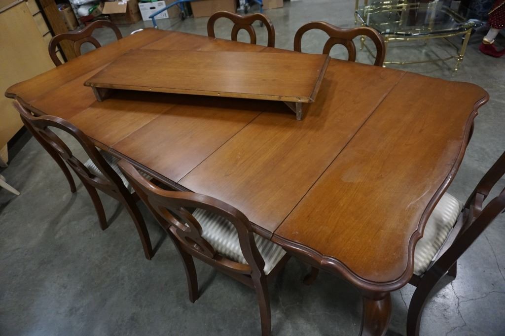 FRENCH PROVINCIAL DINING TABLE WITH 5 LEAFS AND 6 CHAIRS
