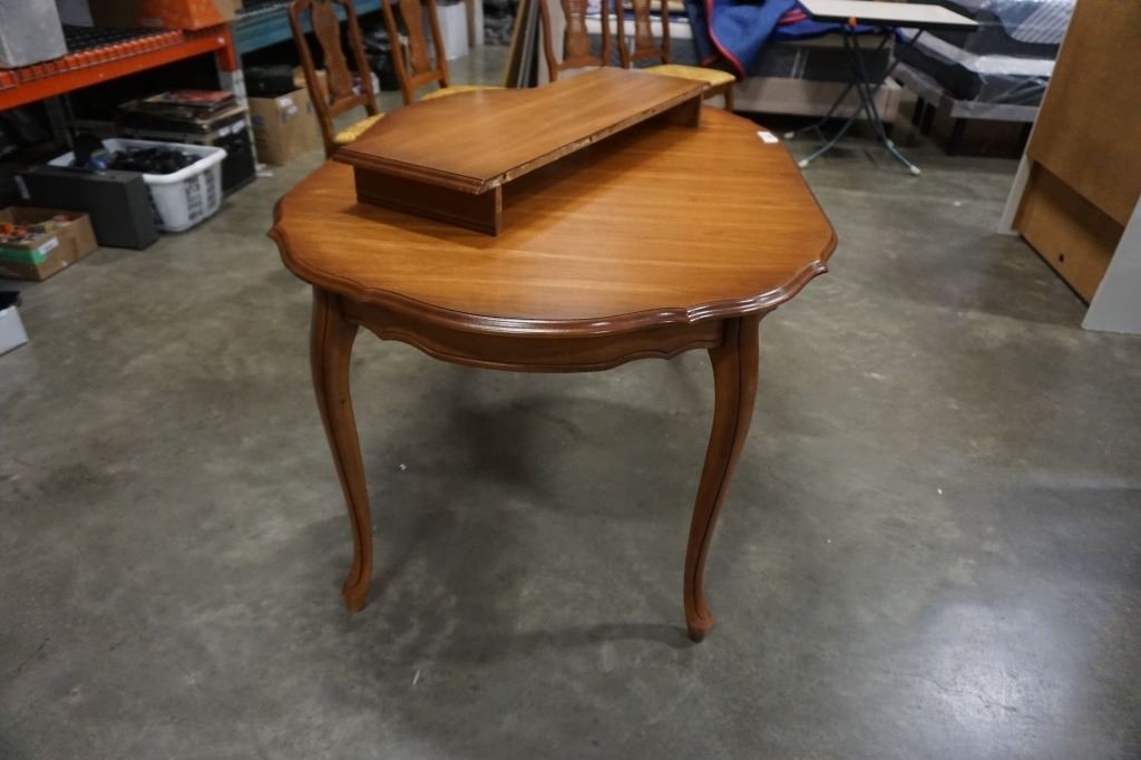 FRENCH PROVINCIAL DINING TABLE WITH LEAF AND 6 CHAIRS
