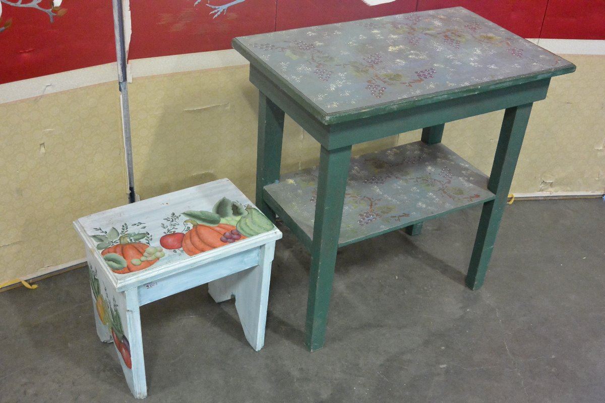 FRUIT INSPIRED PAINTED STOOL AND 2-TIER TABLE