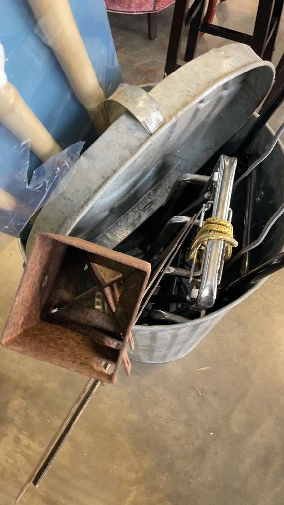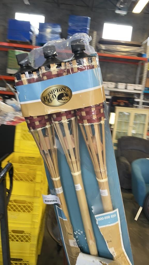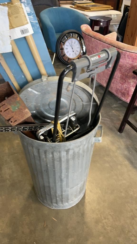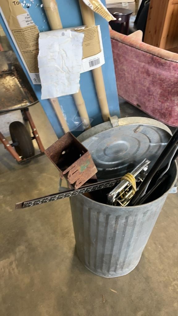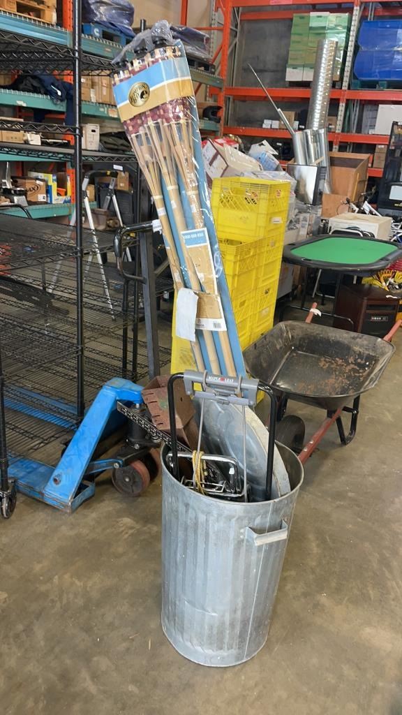 GALVANIZED GARBAGE CAN WITH BAMBOO TORCHES, CARTS AND POST MOUNT