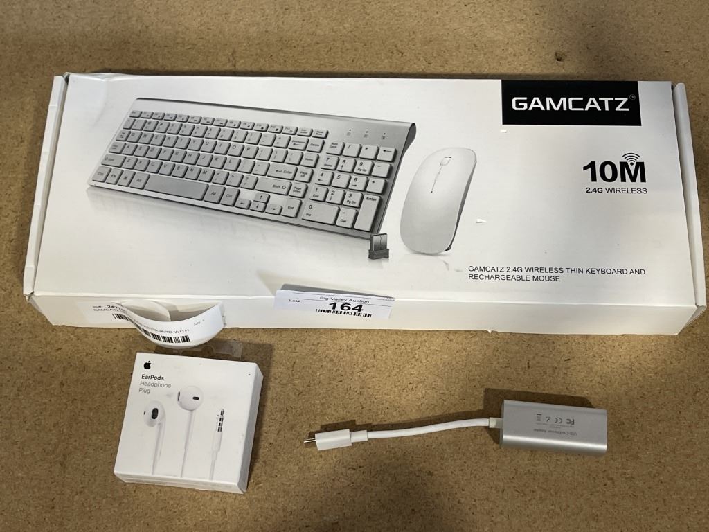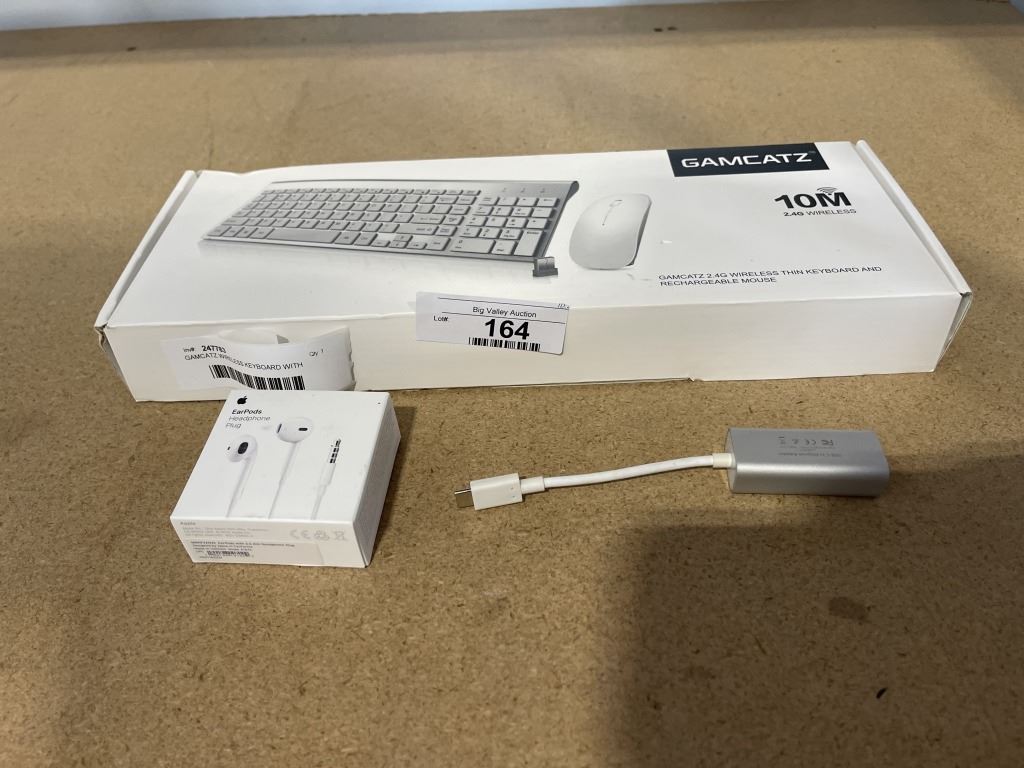 GAMCATZ WIRELESS KEYBOARD WITH APPLE EAR PODS AND ADAPTER