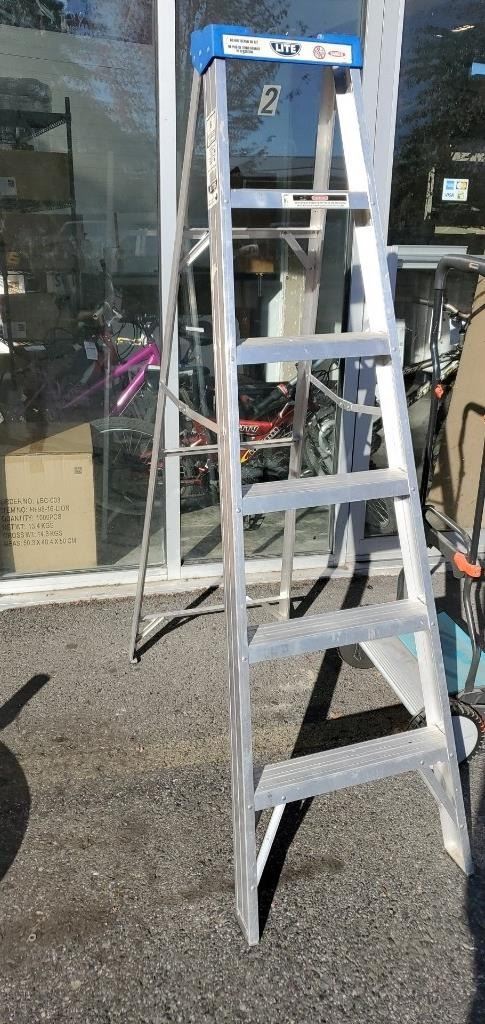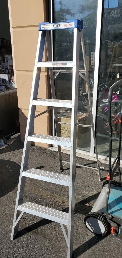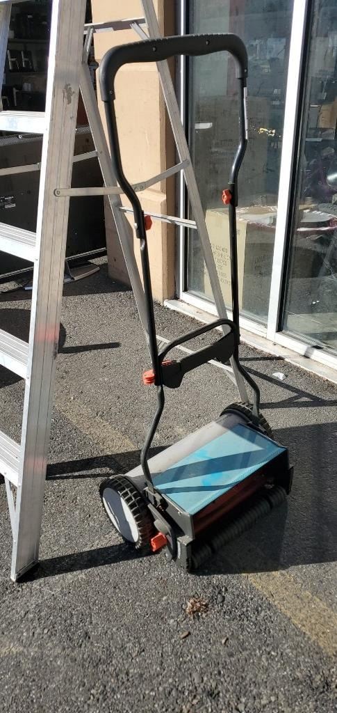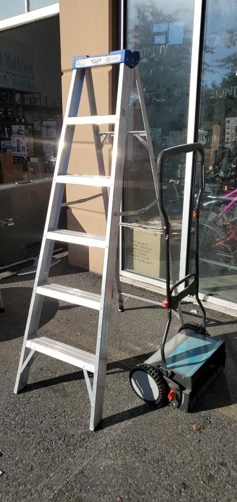 GARDENA REEL MOWER AND 6FT ALUMINUM LADDER