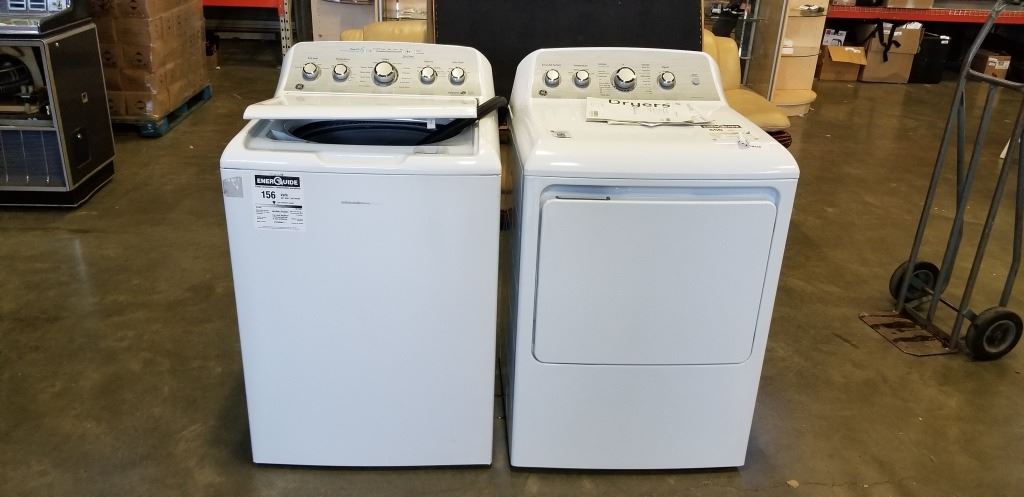 GE HIGH EFFICIENCY DEEP FILL WASHER AND GE HE DRYER, SET, BOTH WORKING