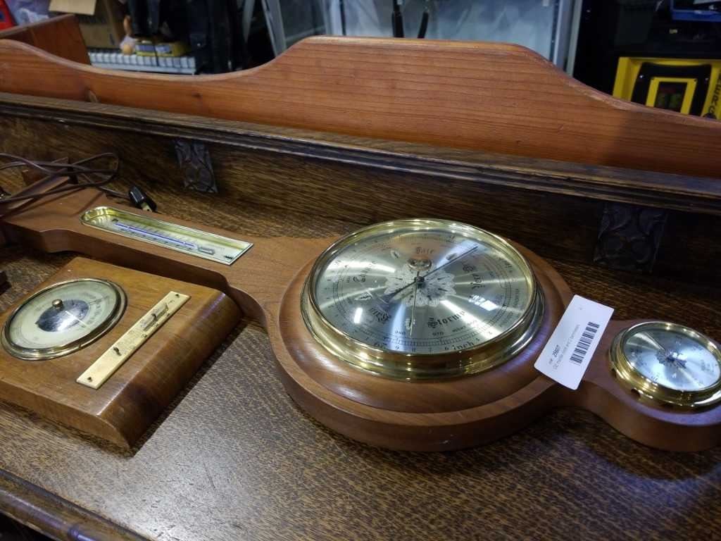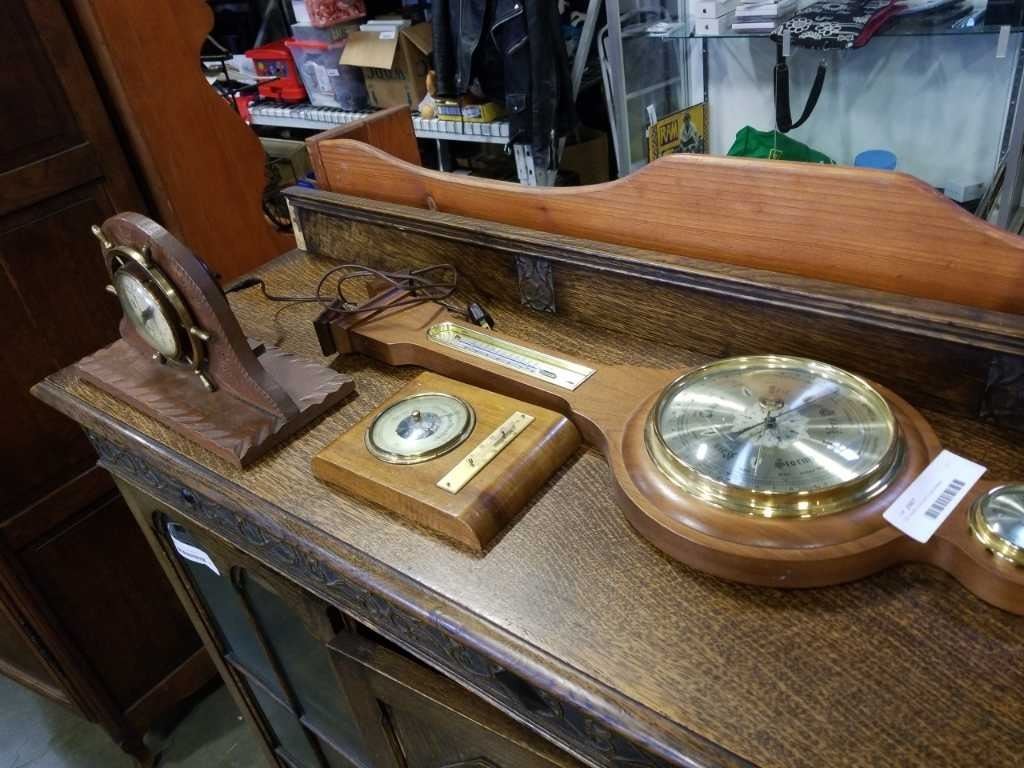 GE mantle clock and 2 barometers