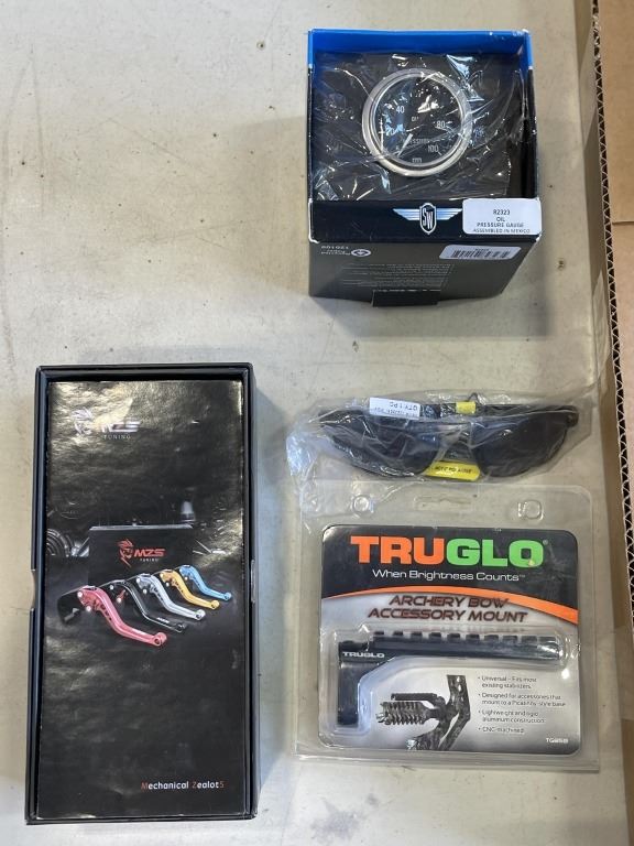 GENUINE STEWART WARNER MECH OIL PRESS GUAGE, CLUTCH KIT, ARCHERY BOW MOUNT, LUG NUT SET ETC