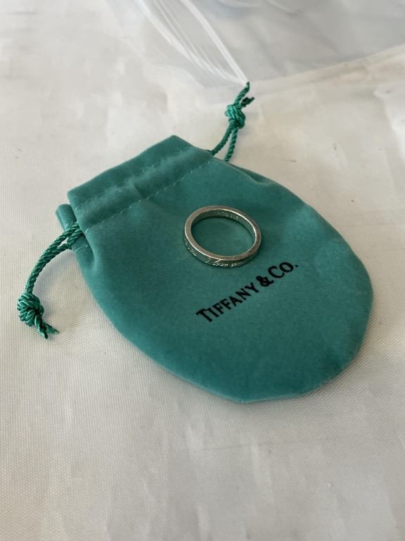 GENUINE TIFFANY AND CO 925 STERLING SILVER RING BAND HAND ENGRAVED 5X I LOVE YOU