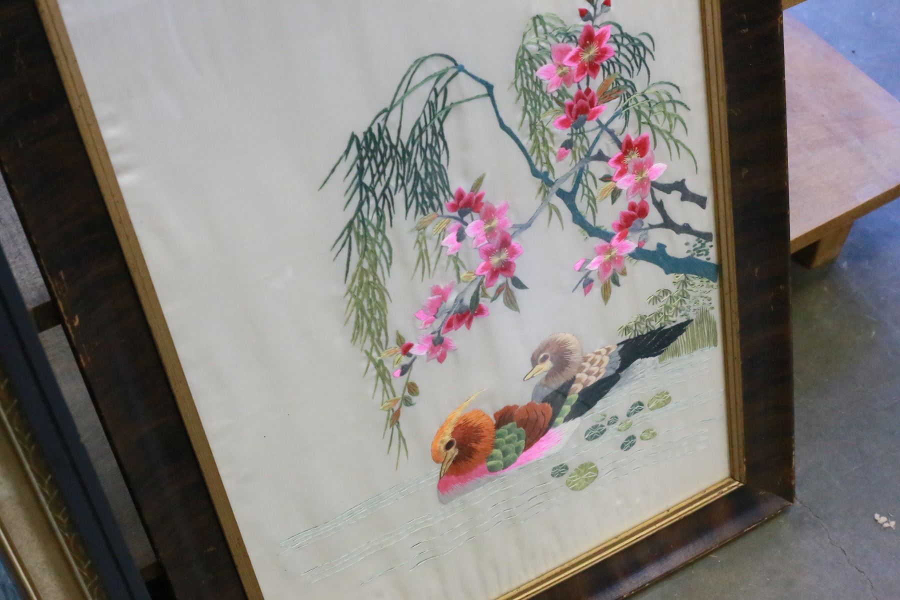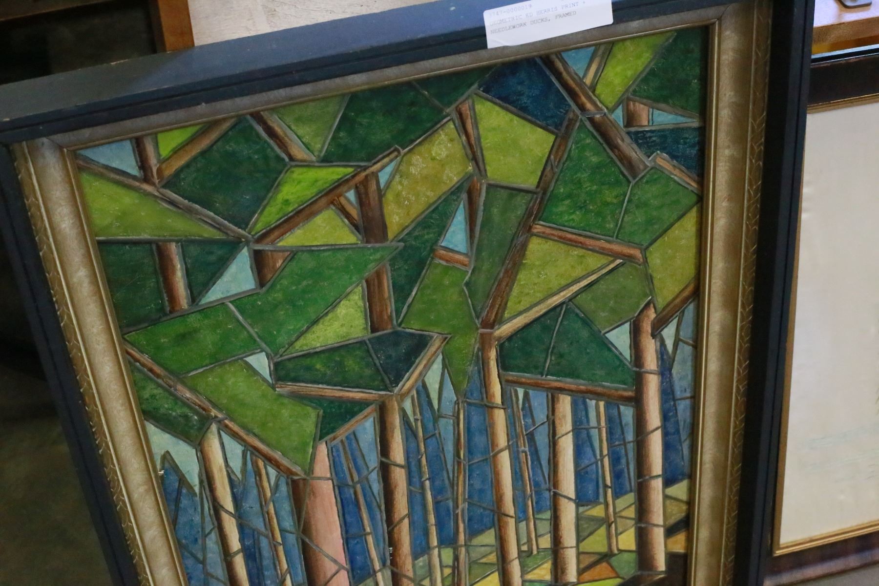 GEOMETRIC ED HERRIS PRINT + NEEDLEWORK DUCKS, FRAMED