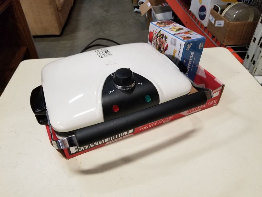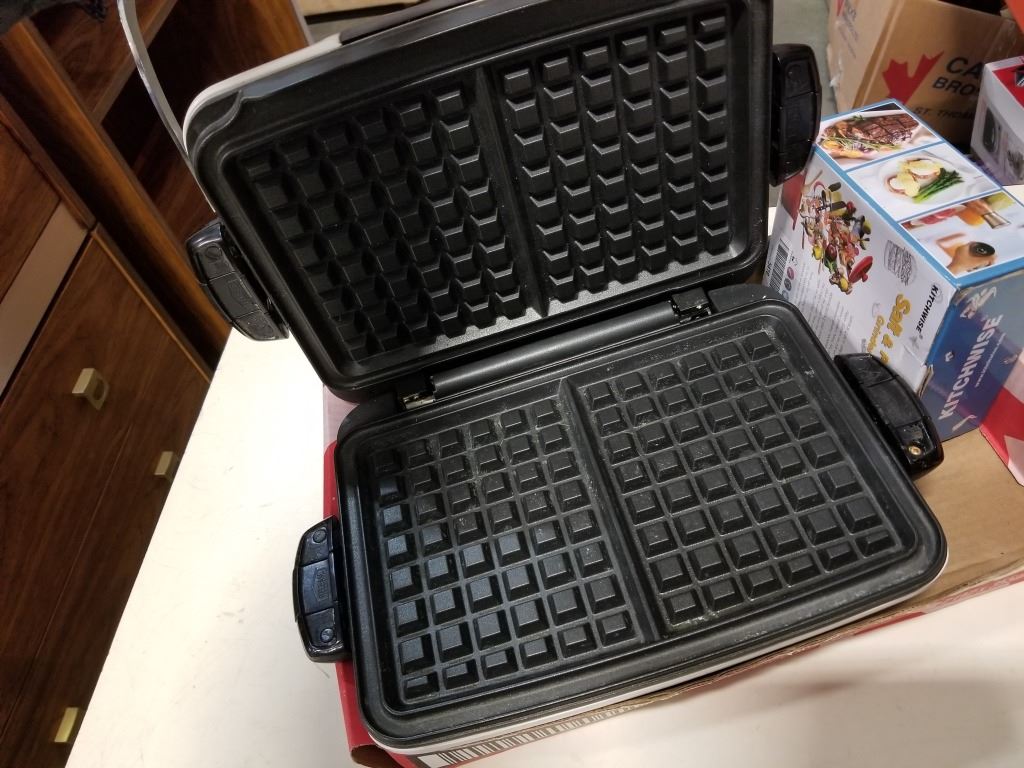 GEORGE FOREMAN WAFFLE GRILL AND SALT AND PEPPER MILLS