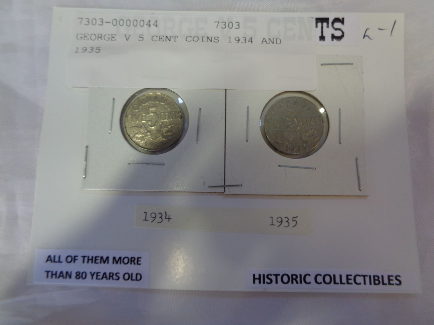GEORGE V 5 CENT COINS 1934 AND 1935