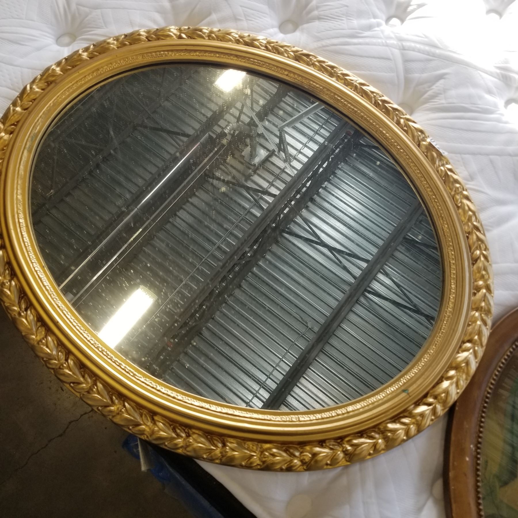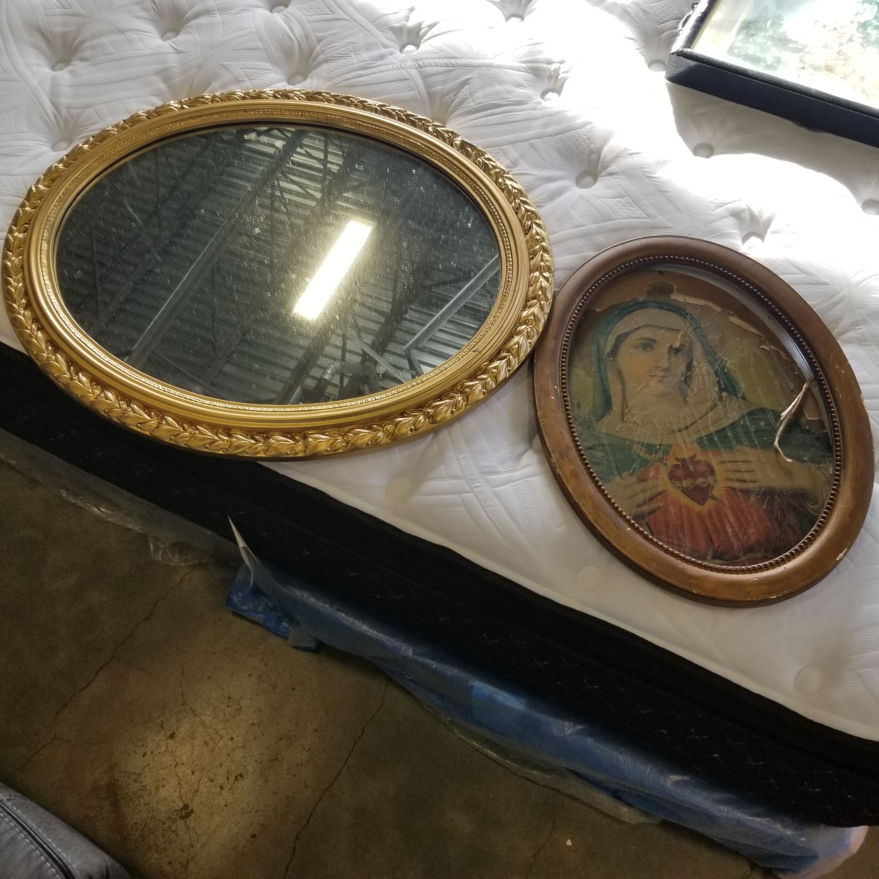 GILT FRAMED OVAL MIRROR AND ANTIQUE PICTURE FRAME