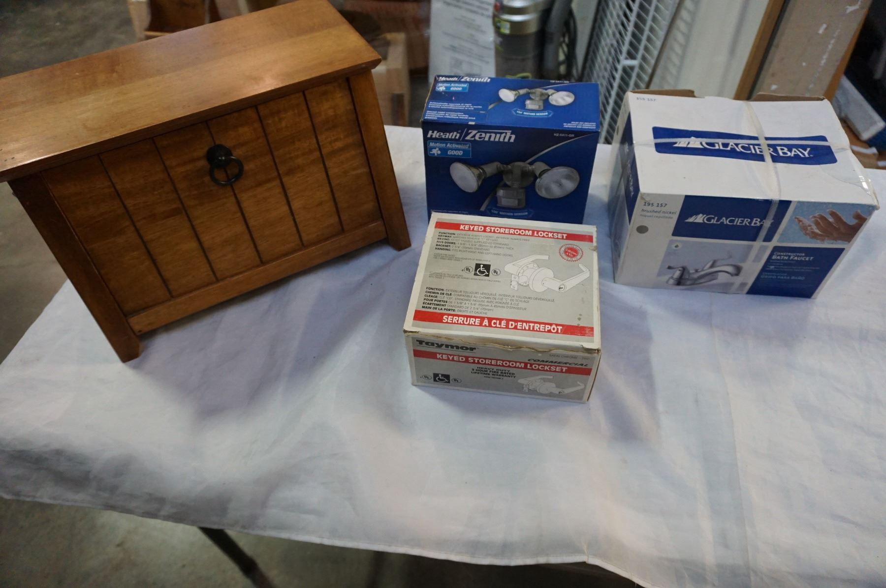GLACIER BAY FAUCET MOTION ACTIVATED LIGHT AND WOOD BOX AND LEVERSET