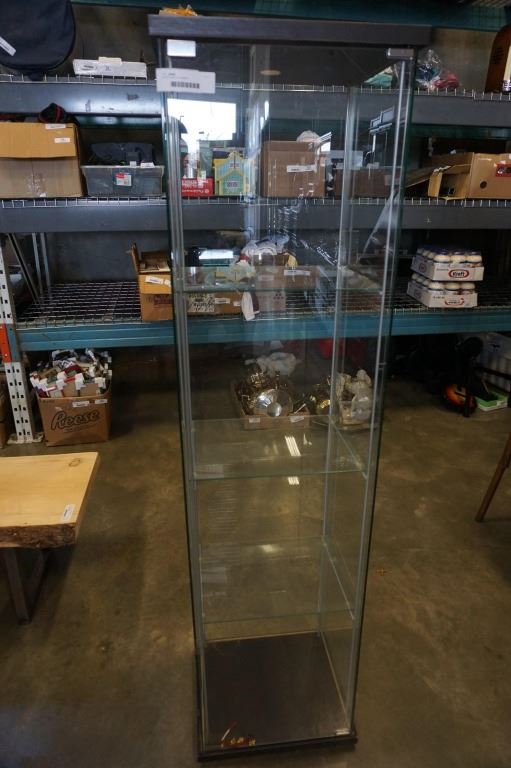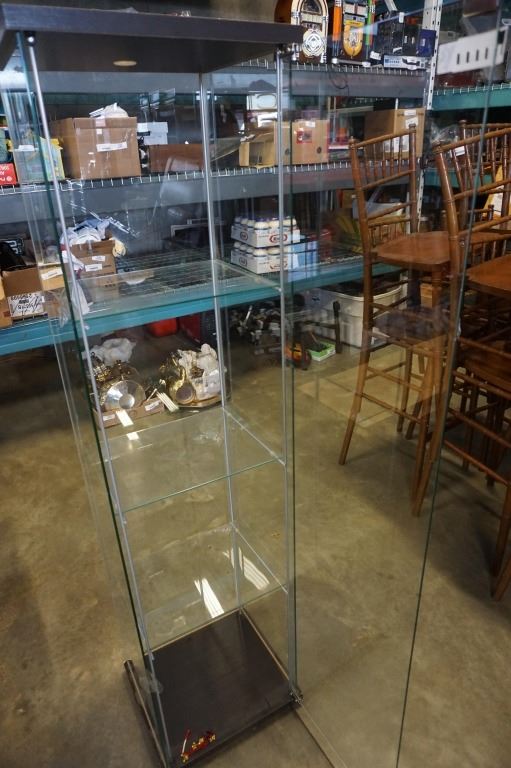 GLASS DISPLAY CABINET - 17 INCHES WIDE X 14.5 DEEP X 64.5 TALL