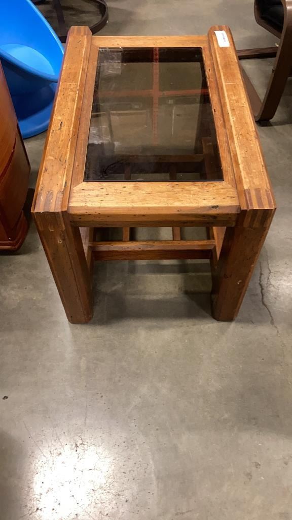 GLASS INSERT RUSTIC SIDE TABLE