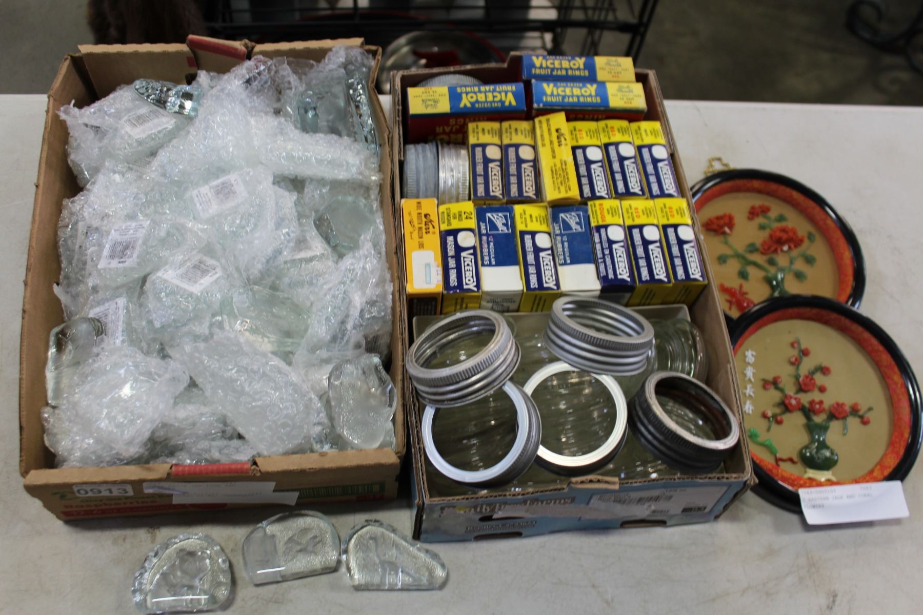 GLASS MASON JAR LIDS AND SUPPLIES AND GLASS ANIMAL ORNAMENTS