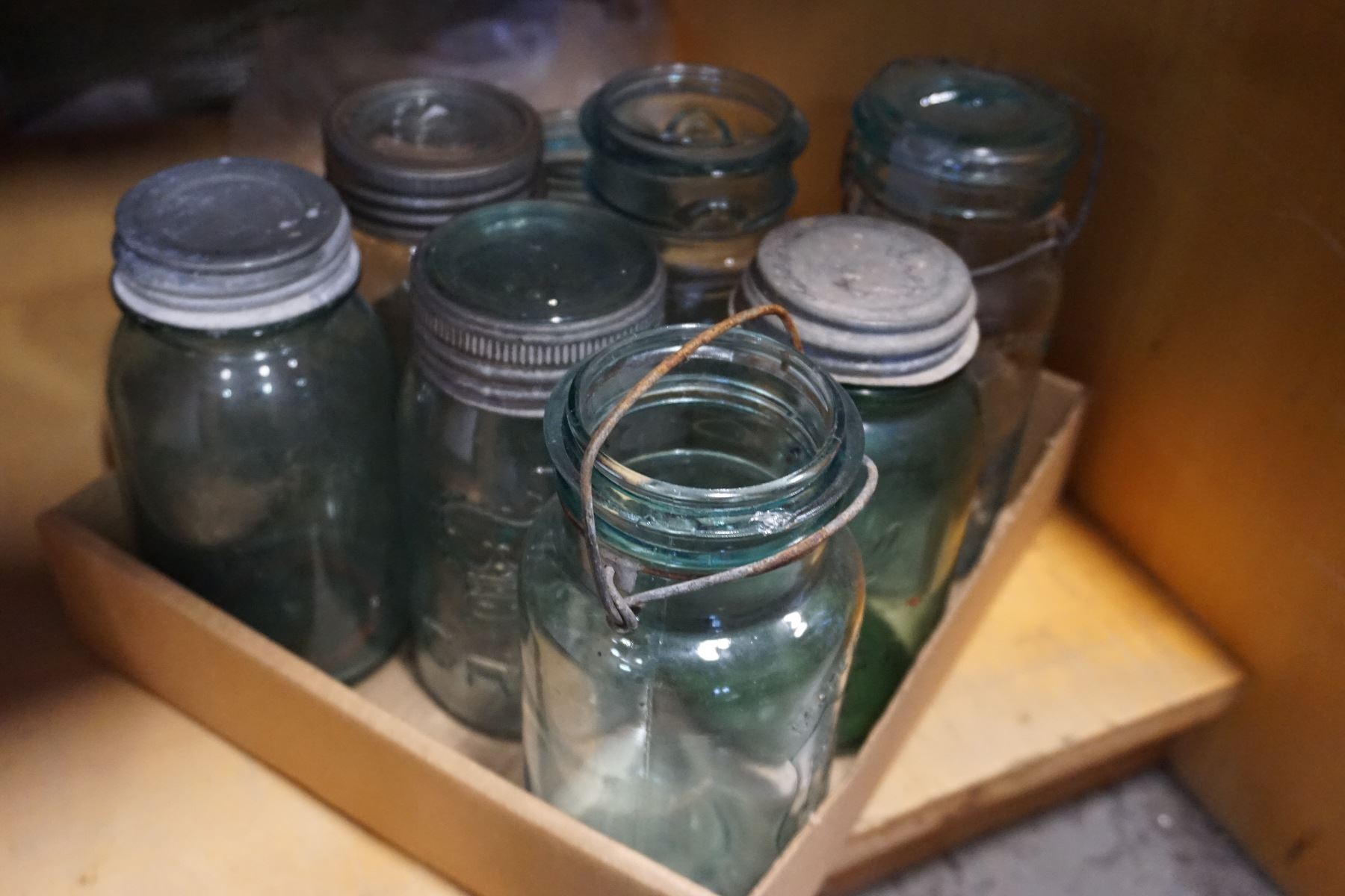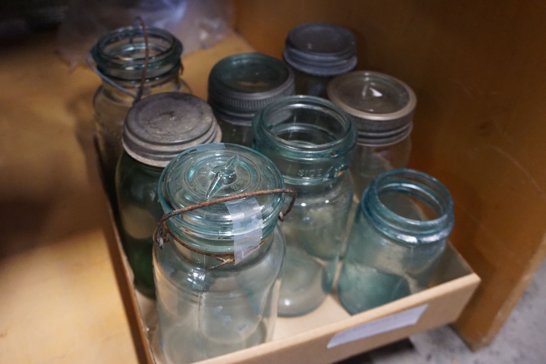GLASS MASON JARS SOME W/ GLASS LIDS