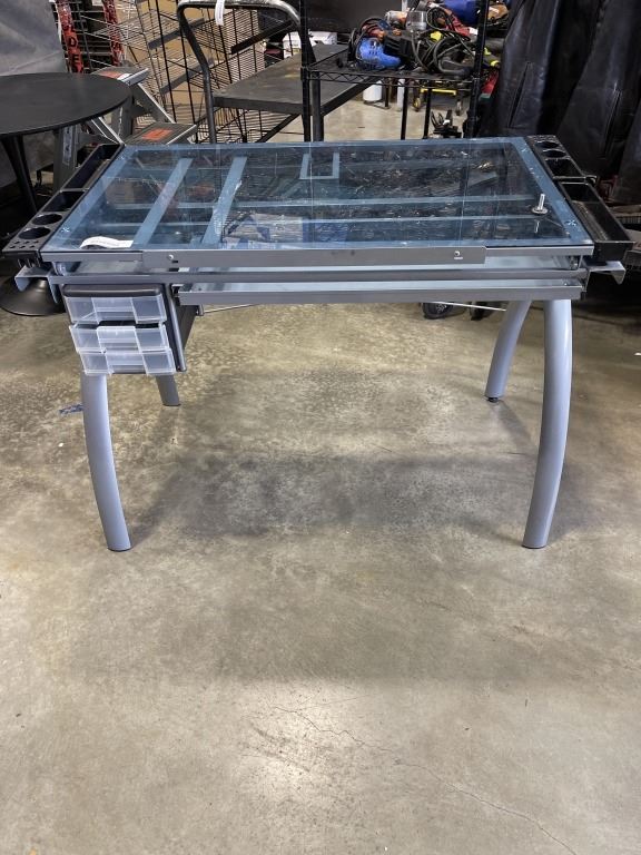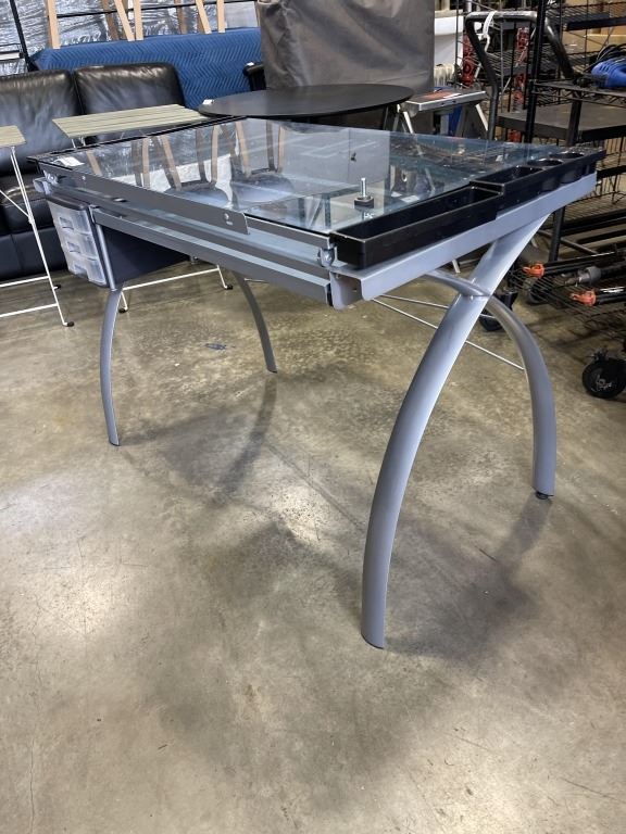 GLASS TOP ADJUSTABLE ANGLE DRAFTING / DRAWING TABLE
