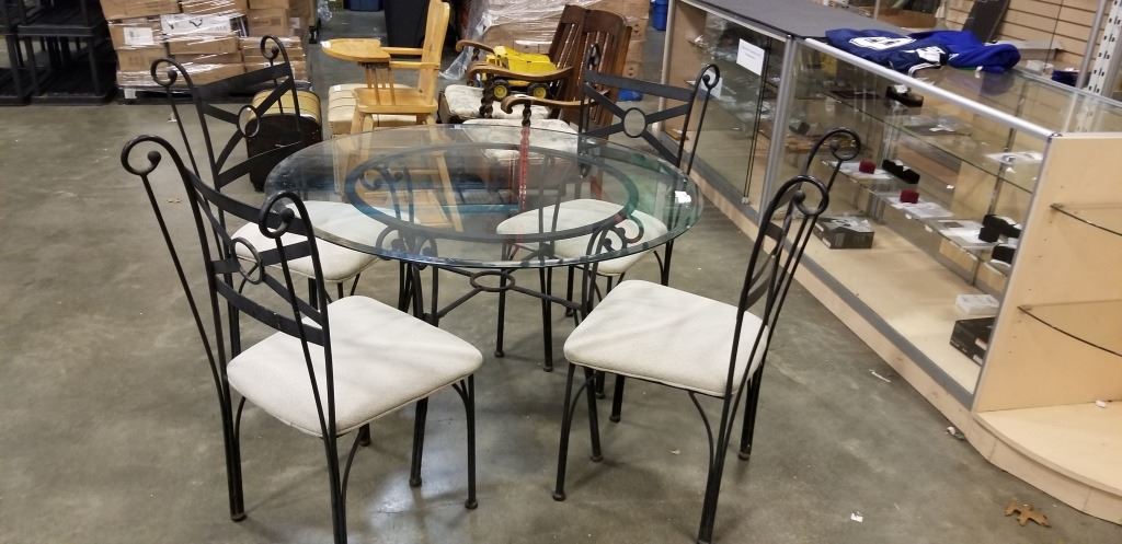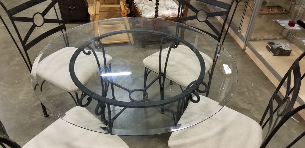GLASS TOP ROUND TABLE WITH 4 CHAIRS