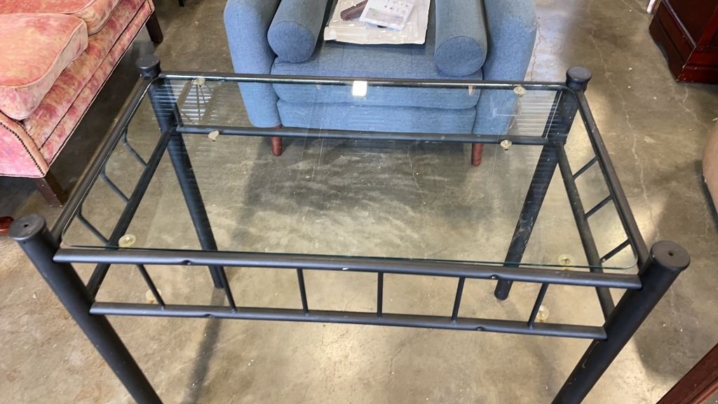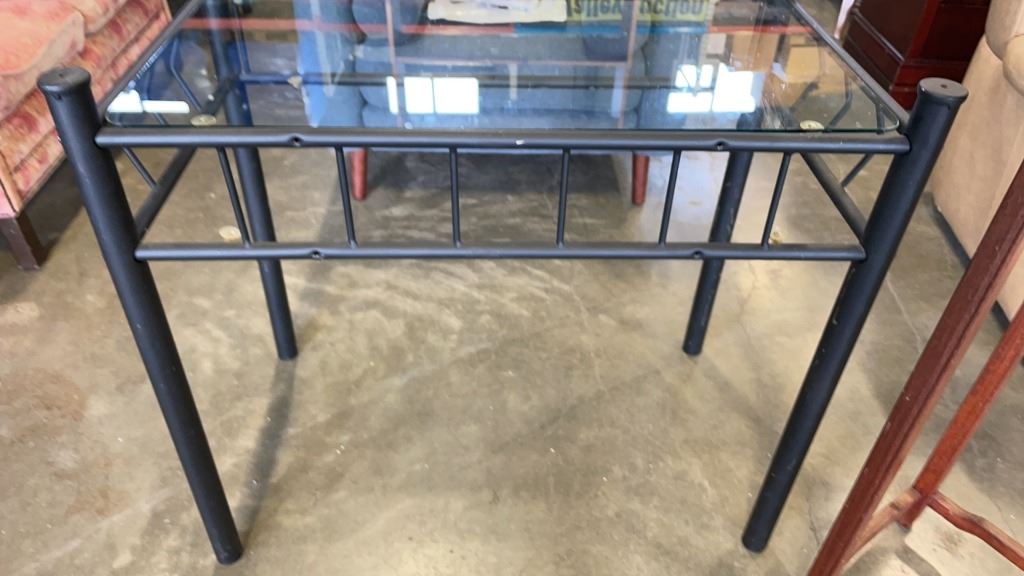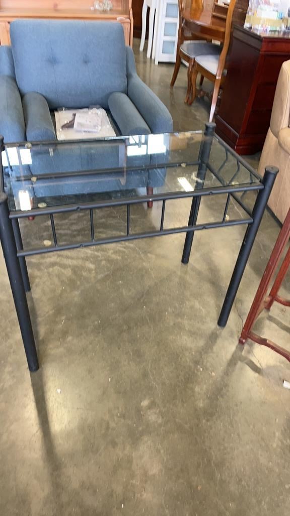 GLASS TOP SIDE TABLE AND 3FT WOOD STAND