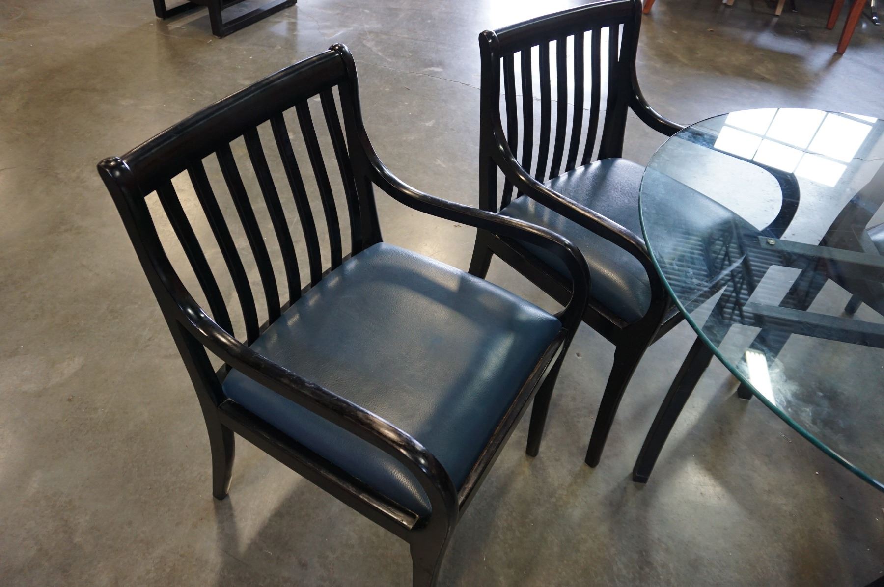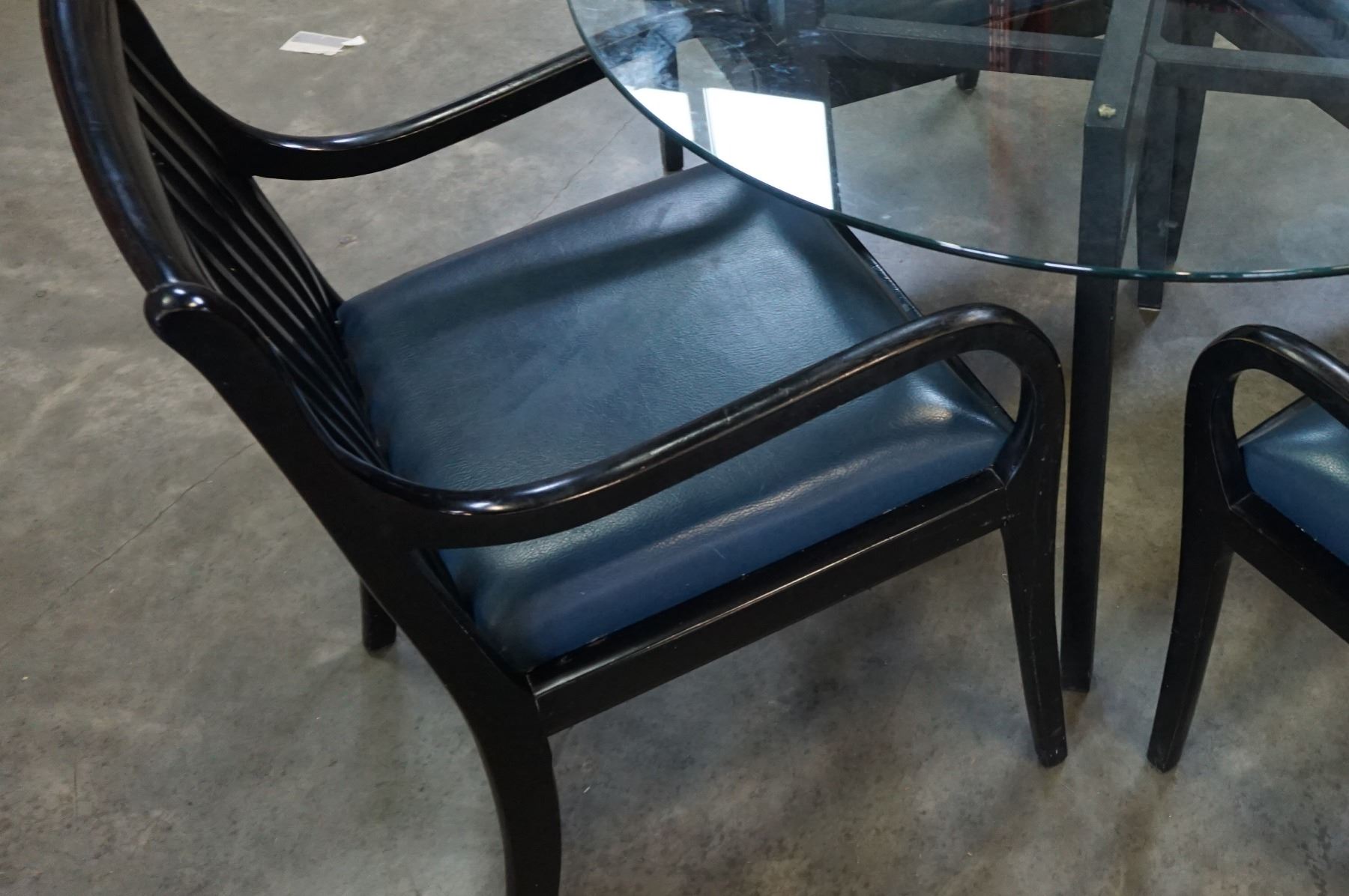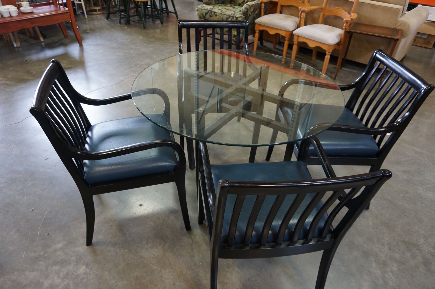 GLASS TOP TABLE AND 4 CHAIRS W/ LEATHER CUSHIONS