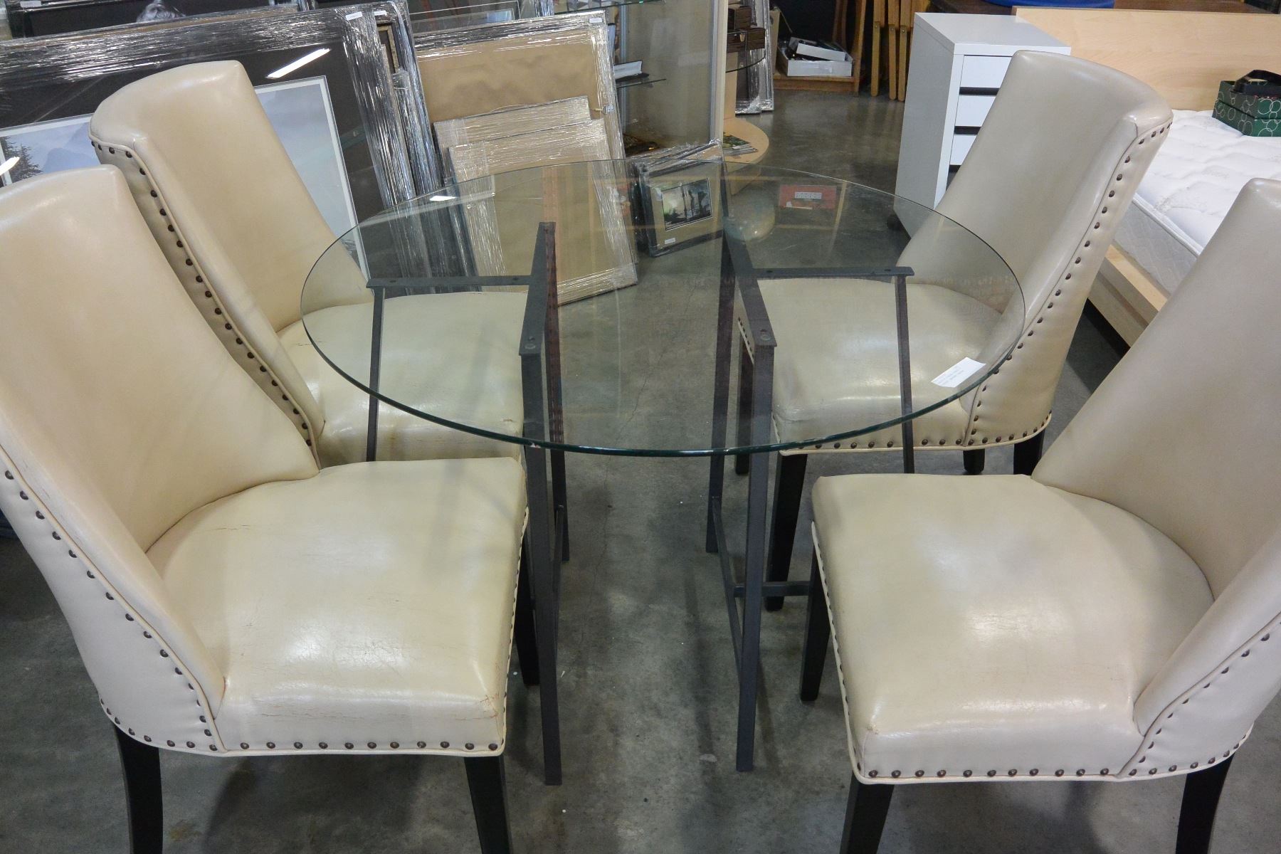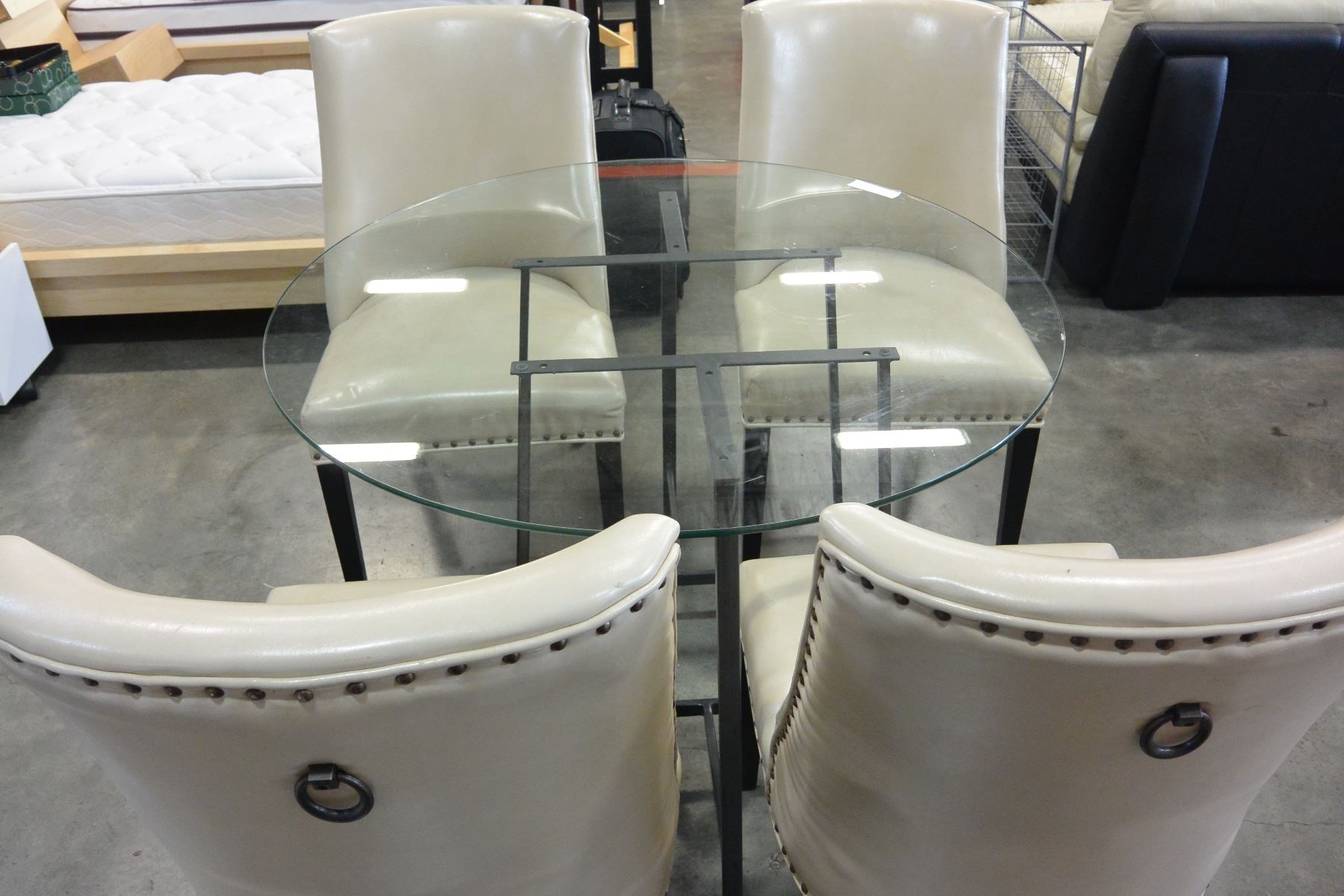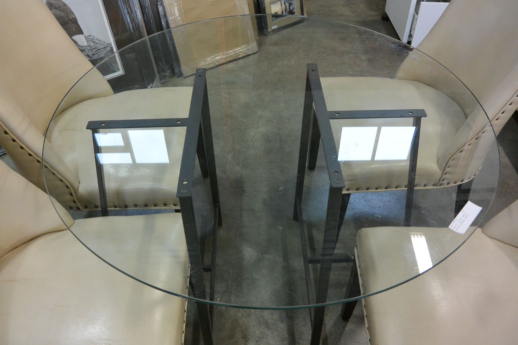 GLASSTOP DINING TABLE 4 STUDDED LEATHER CHAIRS