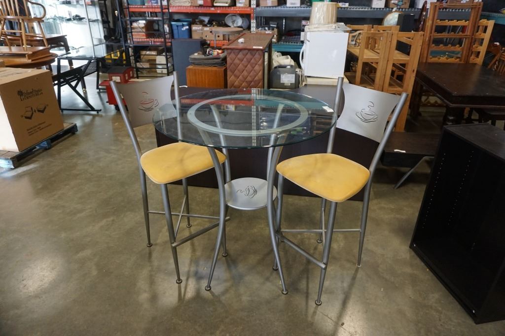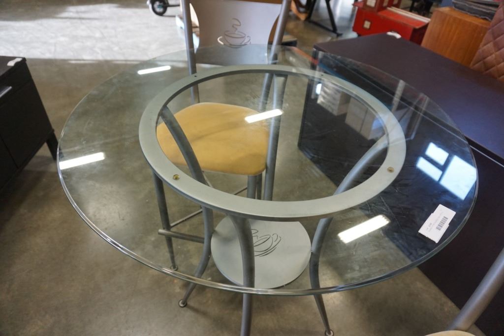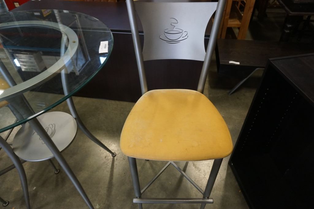 GLASSTOP METAL BISTRO TABLE WITH 2 STOOLS CAFE THEME
