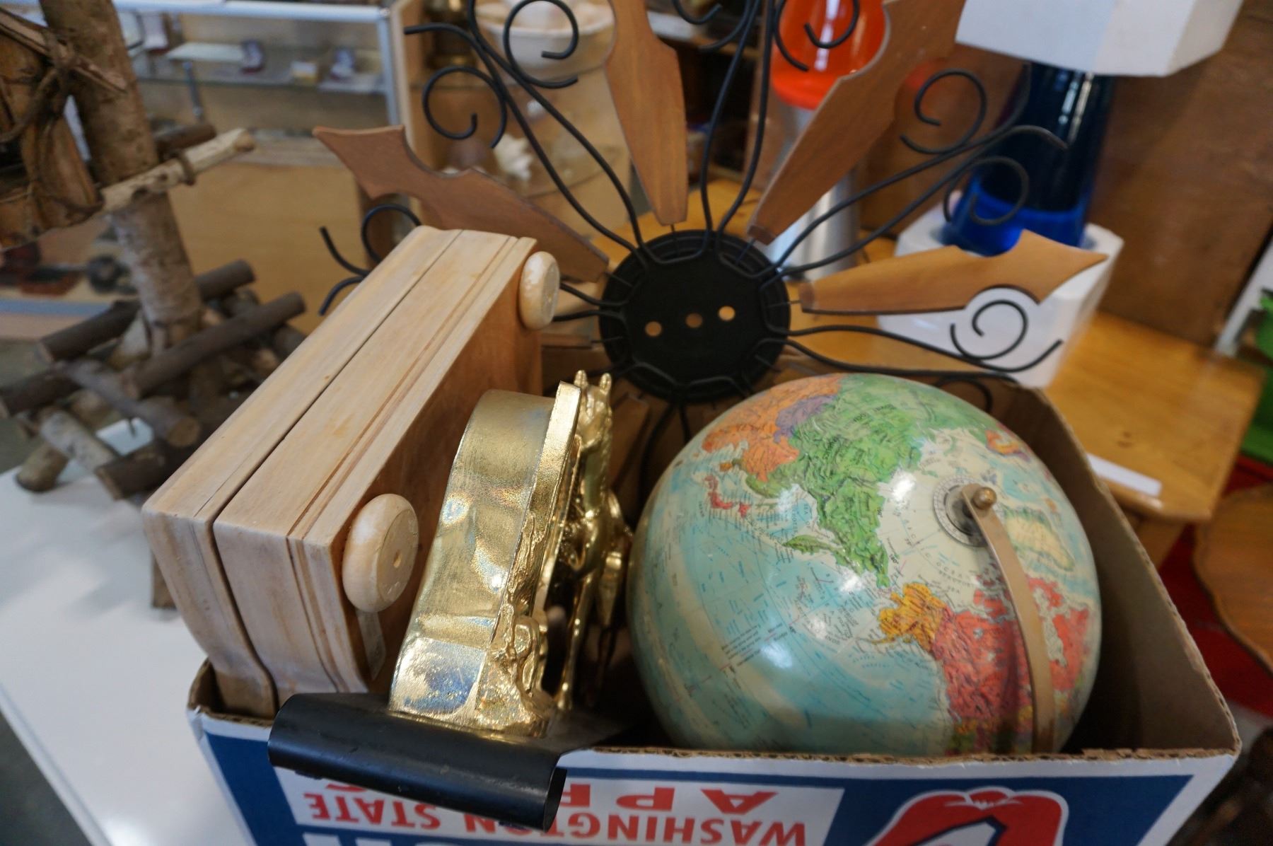 GLOBE AND BOX OF ESTATE GOODS