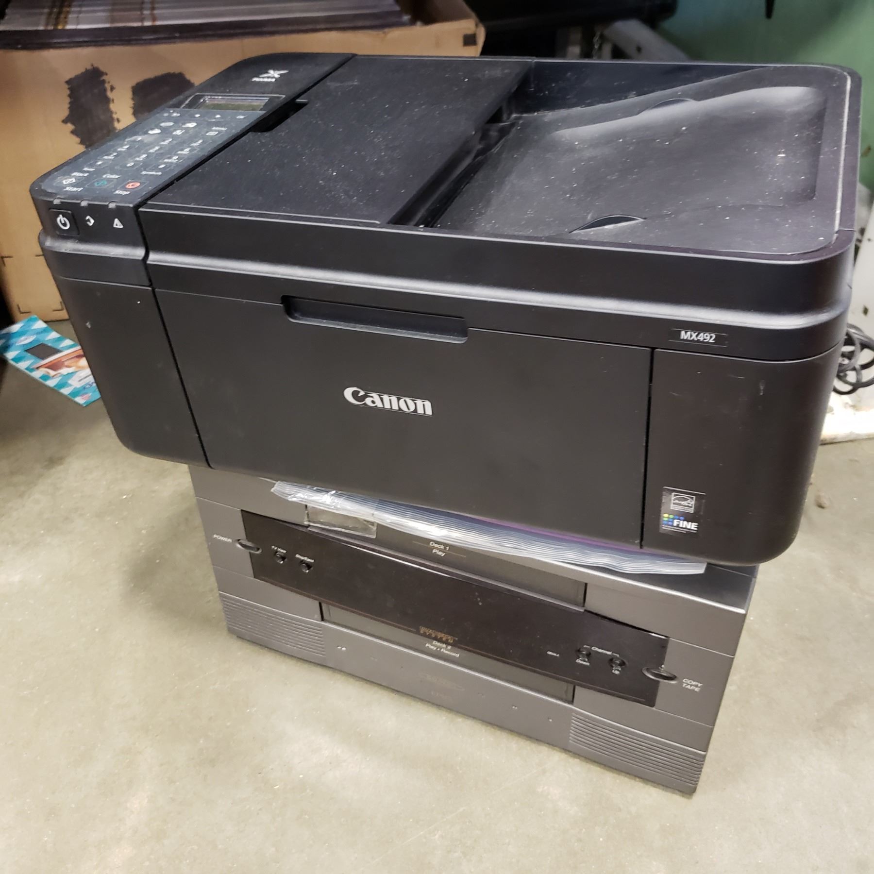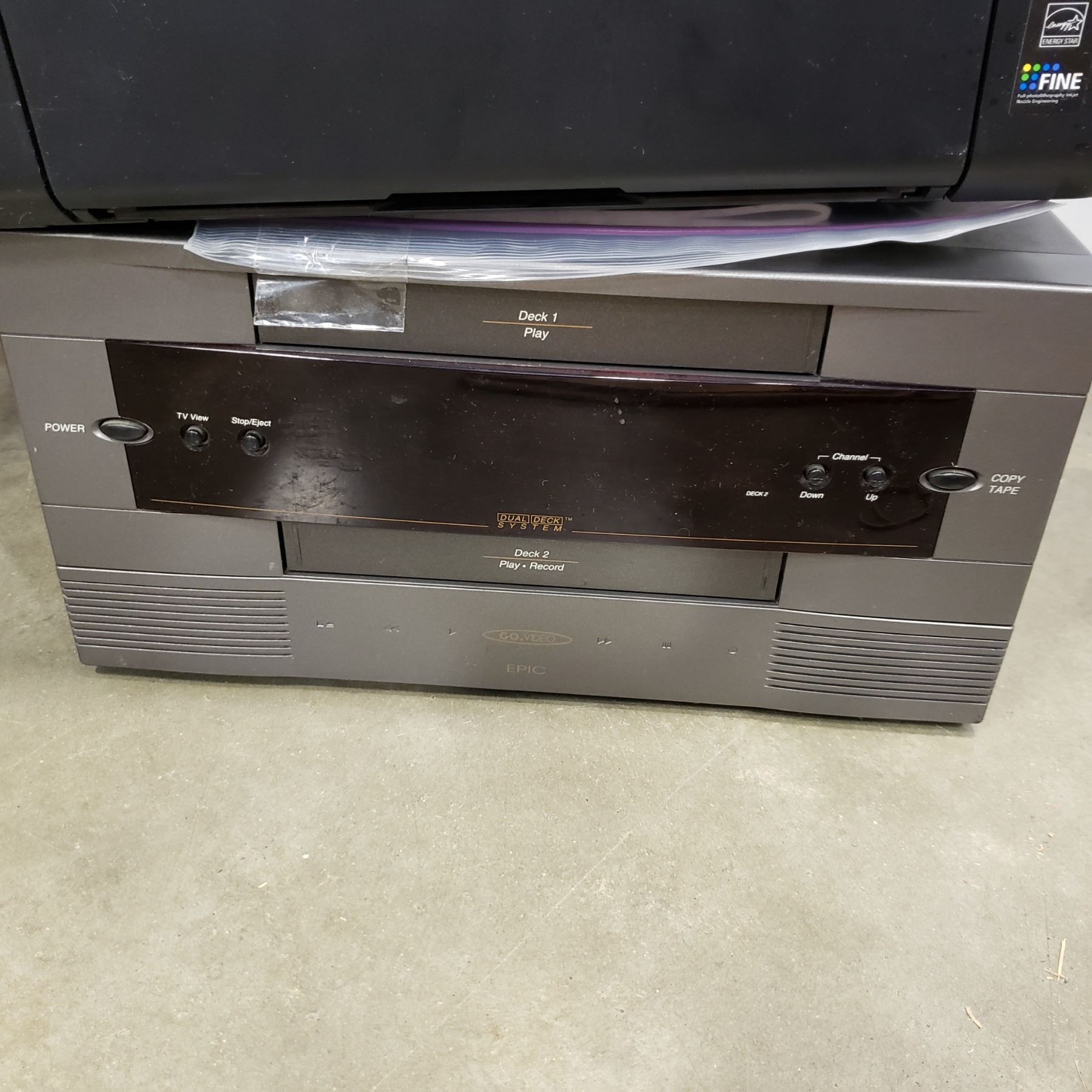 GO VIDEO DUAL DECK VIDEO RECORDER CASSETTE RECORDER AND CANON PIXMA PRINTER