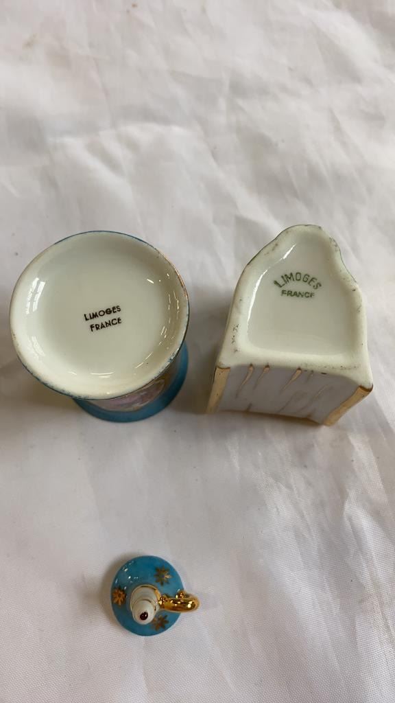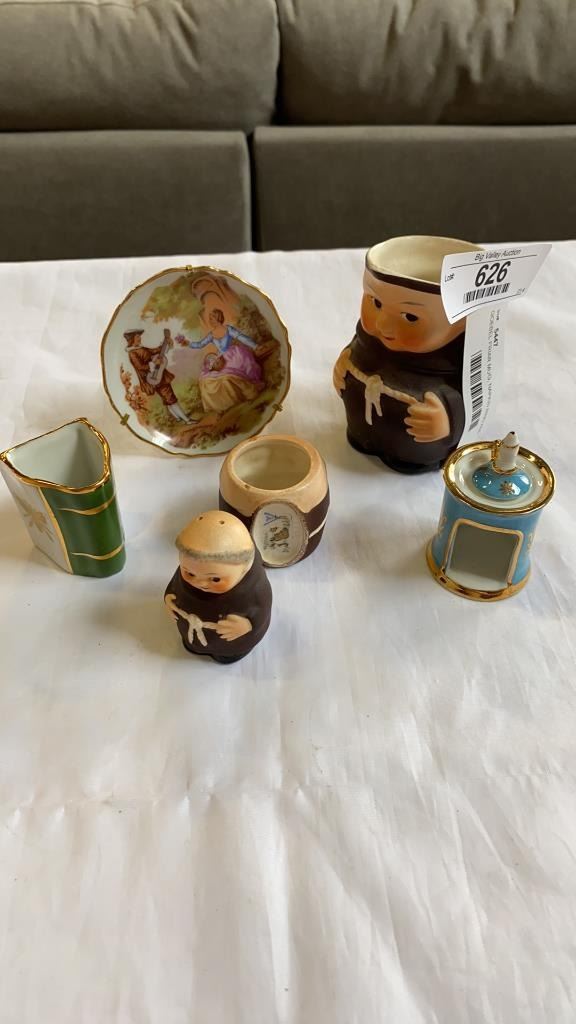 GOEBEL FRIAR MUG, NAPKIN RING AND PEPPER, AND LIMOGES MINIATURE PIECES