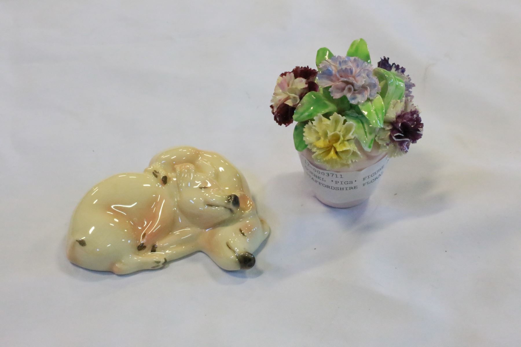 GOEBEL PIGS FIGURE AND STAFFORDSHIRE FLORAL