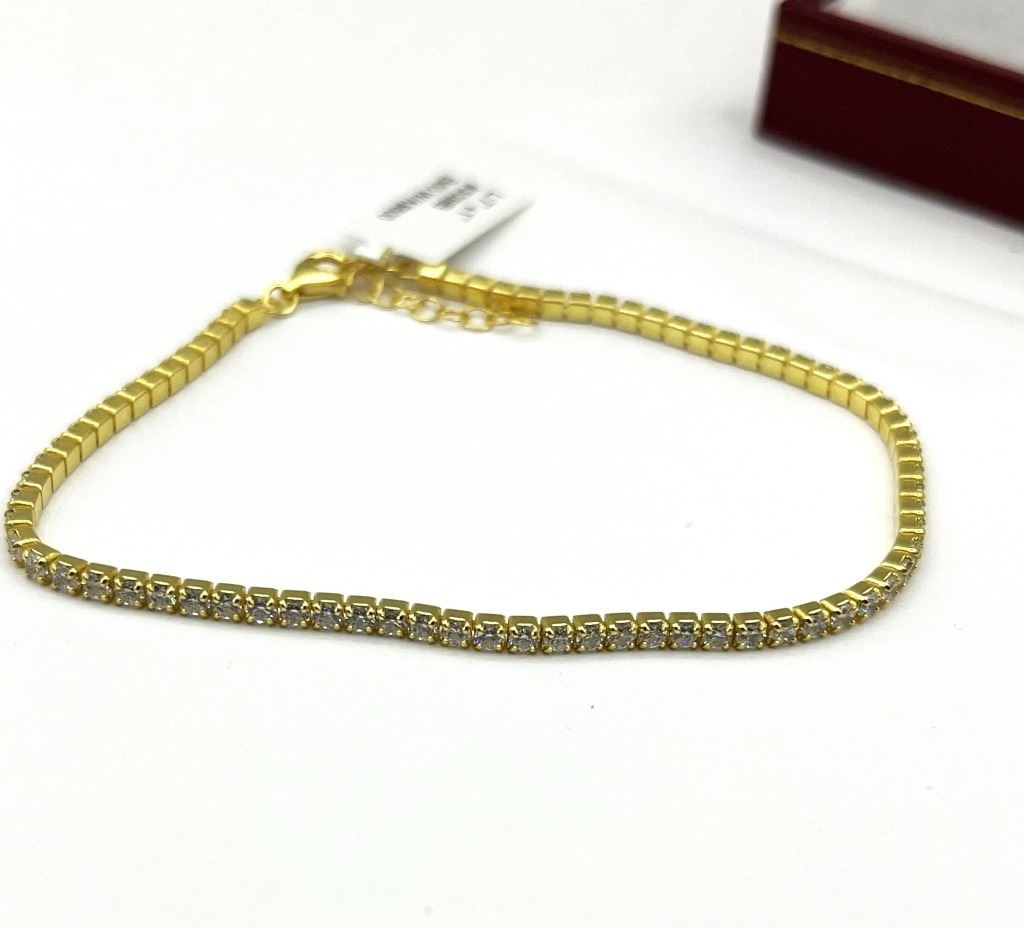 GOLD PLATED STERLING SILVER CZ (4CT) 8-7" TENNIS STYLE BRACELET, W/A $600.00.