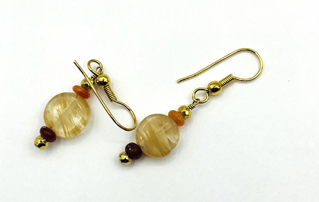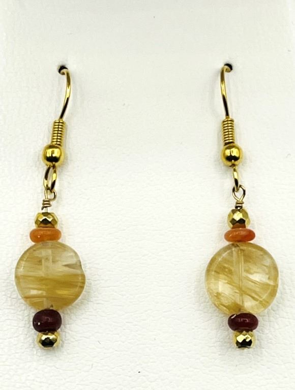 GOLD PLATED STERLING SILVER FIRE OPAL DANGLING EARRING, RETAIL $400.00. OPAL IS THE BIRTHSTONE FOR OCTOBER.