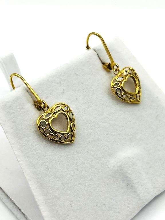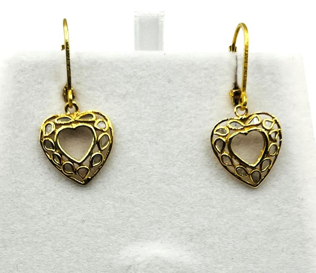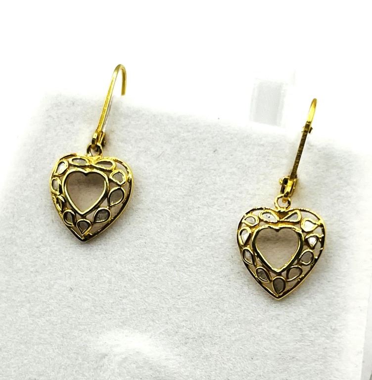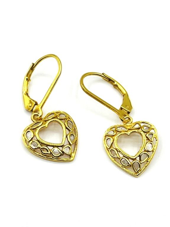 GOLD PLATED STERLING SILVER NATURAL ROSE CUT DIAMOND (0.25CT) DROP STYLE HEART EARRINGS, W/A $370.00.