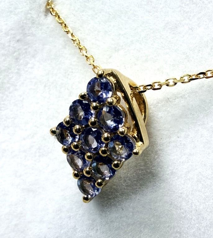 GOLD PLATED STERLING SILVER NATURAL TANZANITE (0.54CT) PENDANT WITH GOLD PLATED STERLING SILVER CHAIN, W/A $490.00. TANZANITE IS THE BIRTHSTONE FOR DECEMBER.