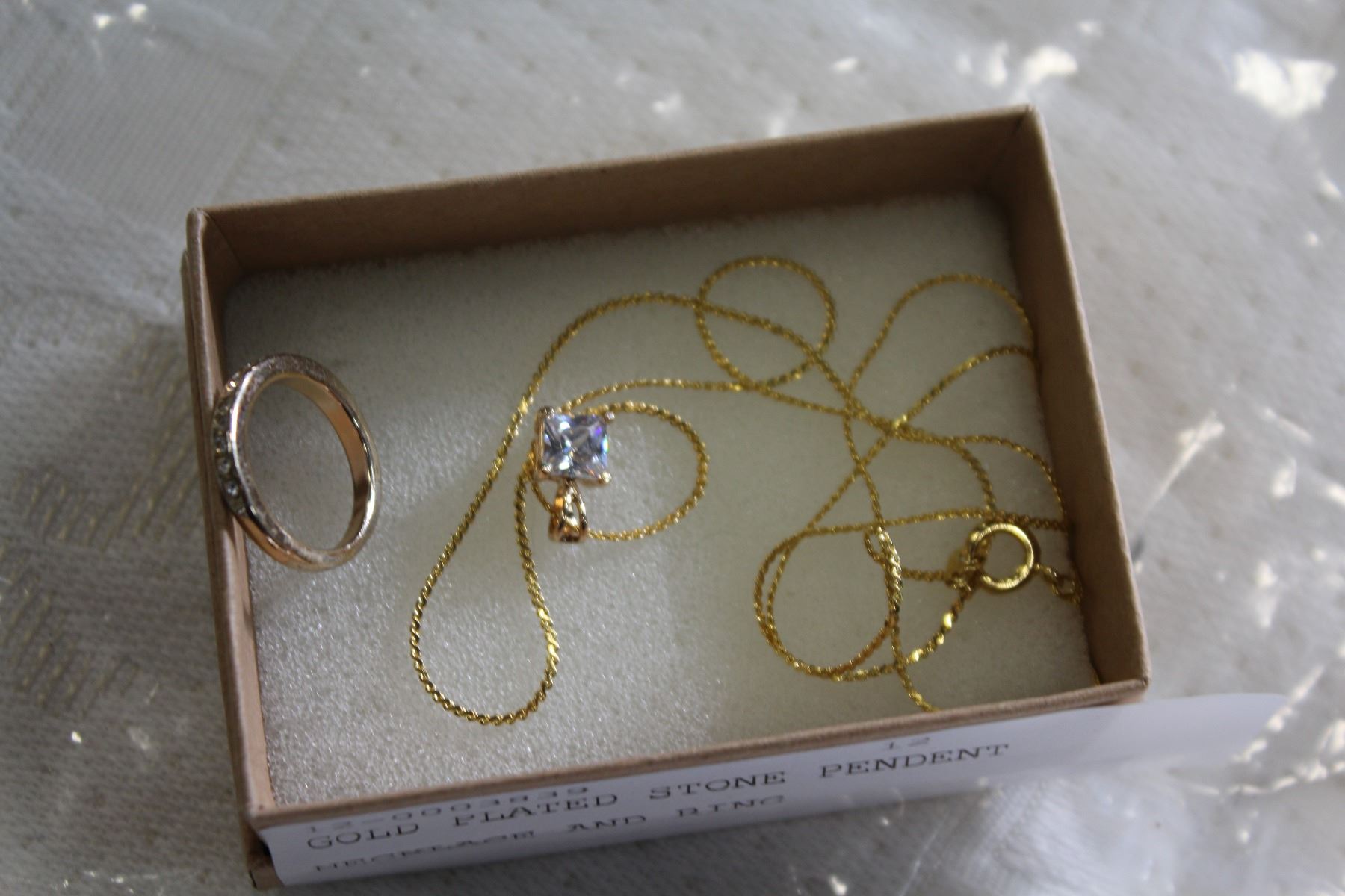 GOLD PLATED STONE PENDENT NECKLACE AND RING