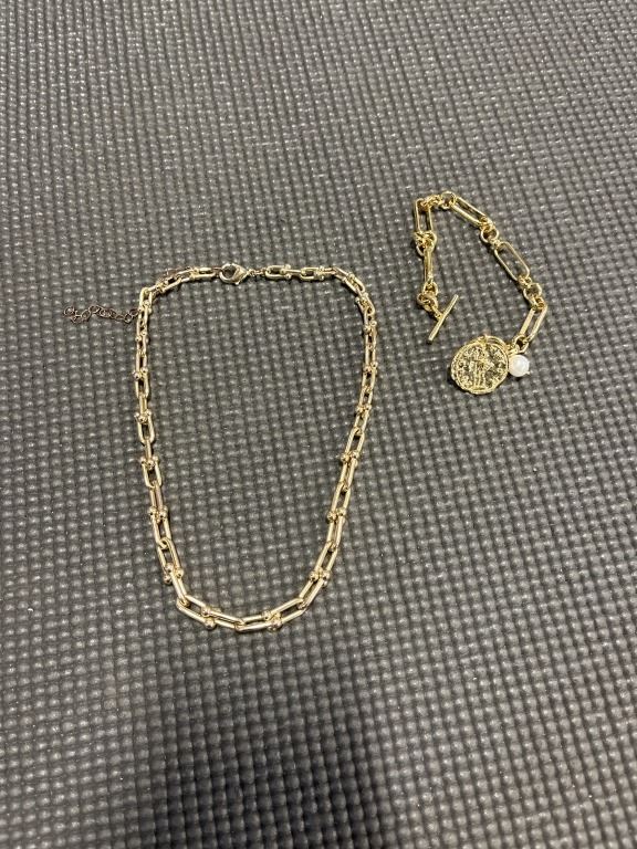 GOLD TONE LINKS BRACELET AND NECKLACE