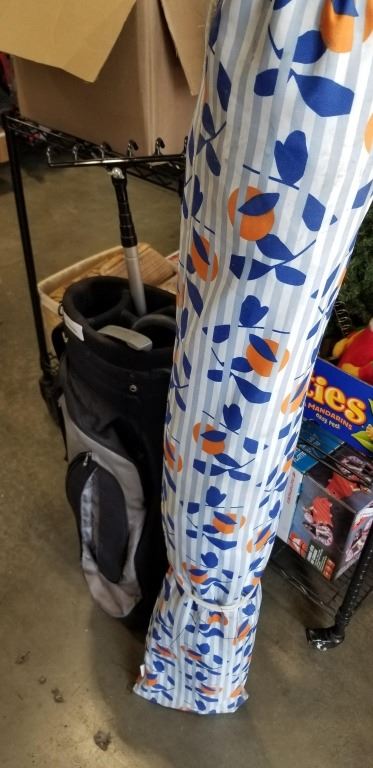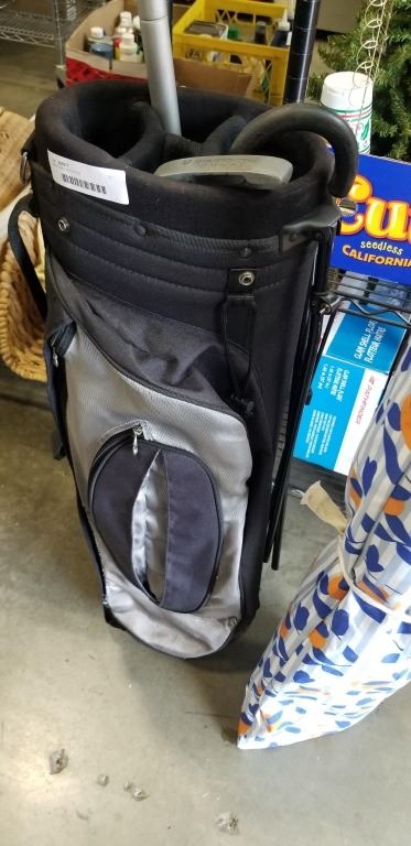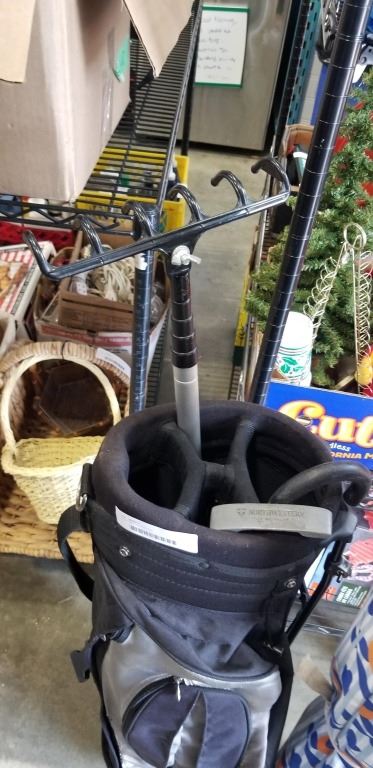 GOLF BAG W/ PUTTER, RAKE, AND UMBRELLA