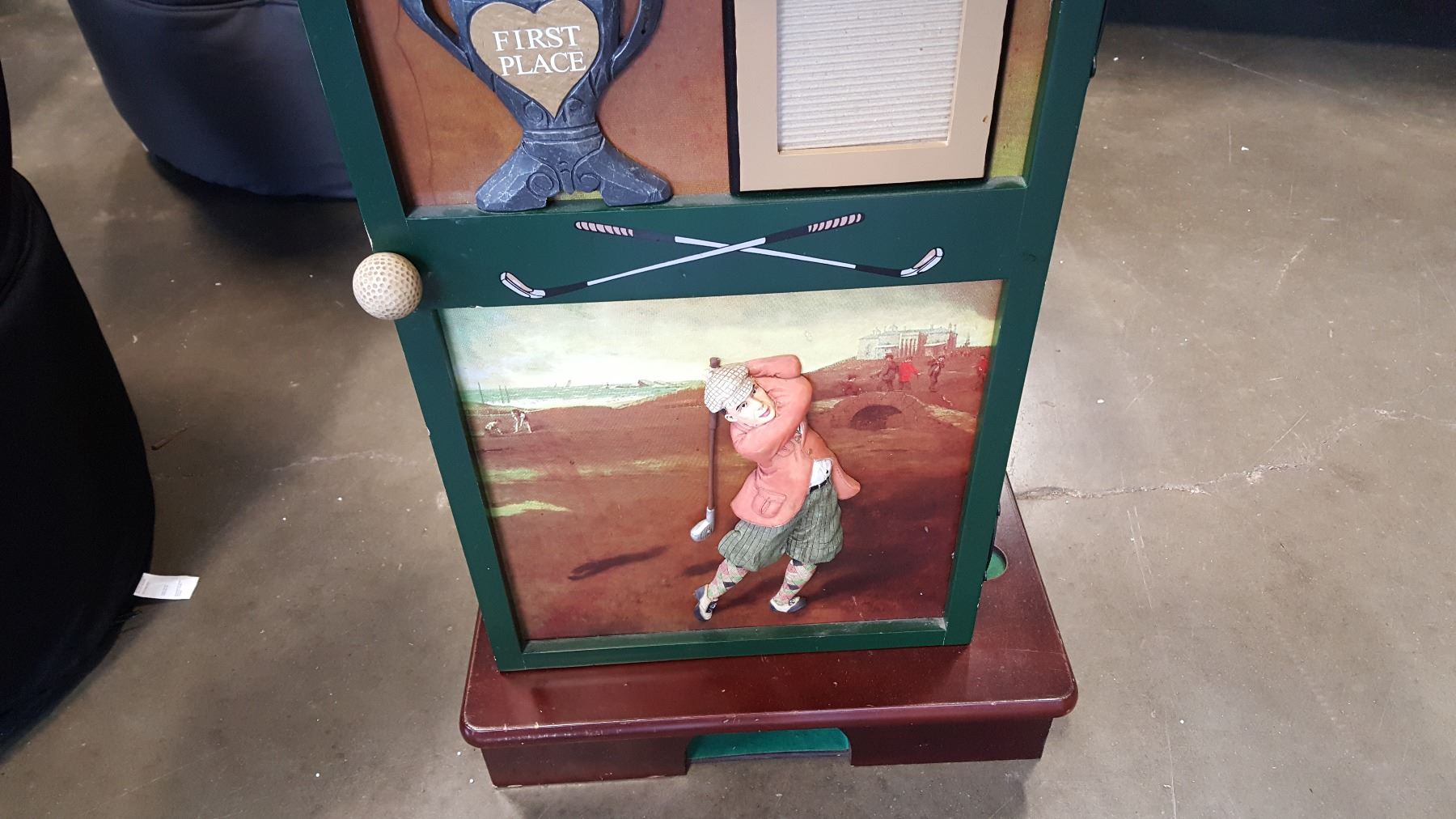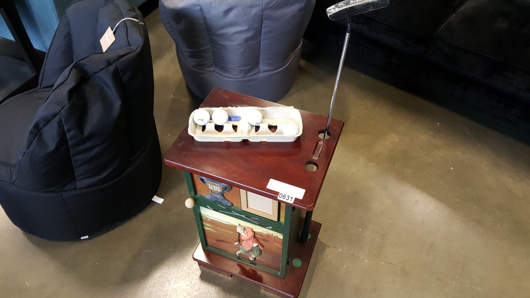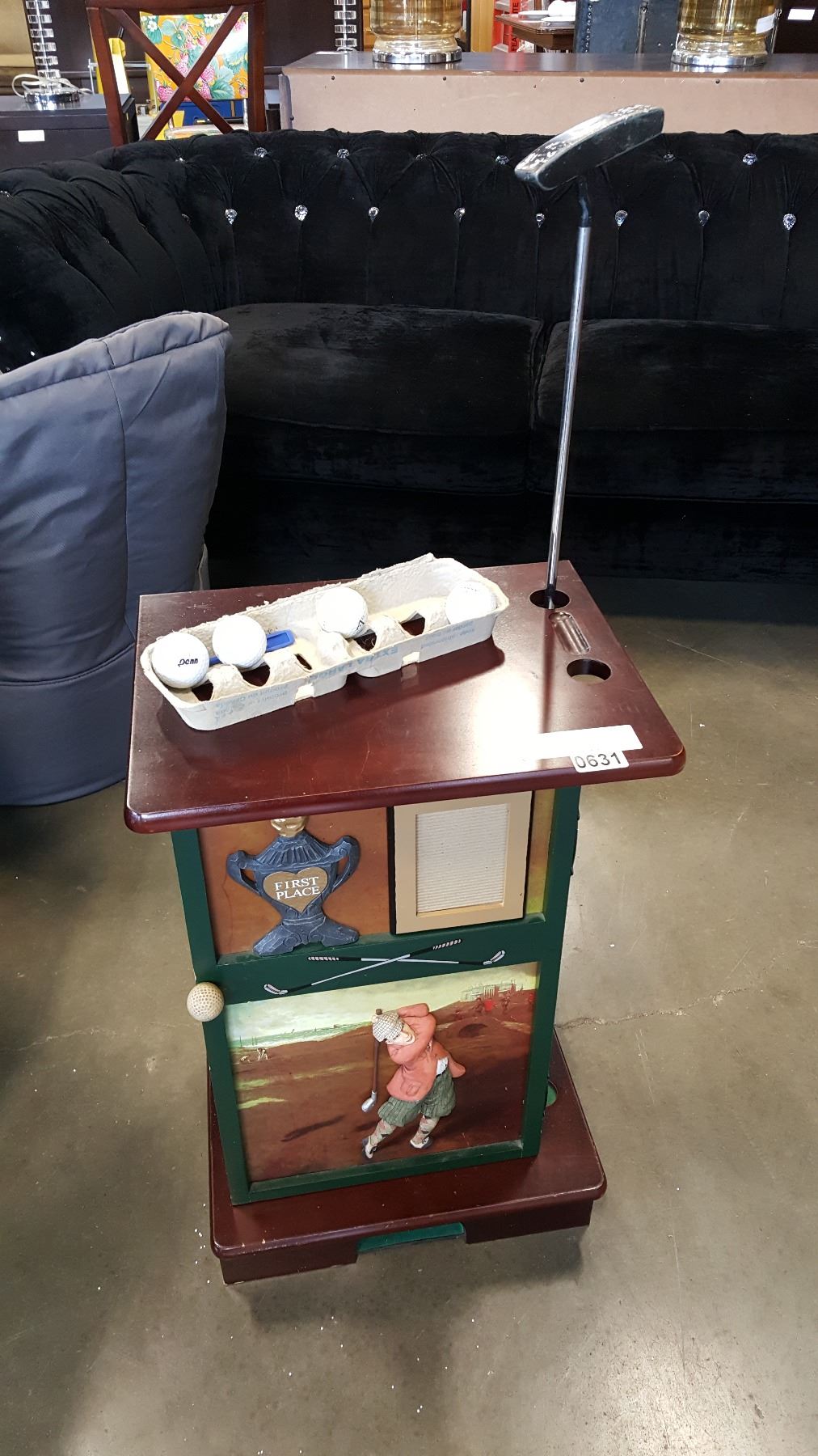 GOLF CABINET WITH BALL RETURN, PUTTER ETC