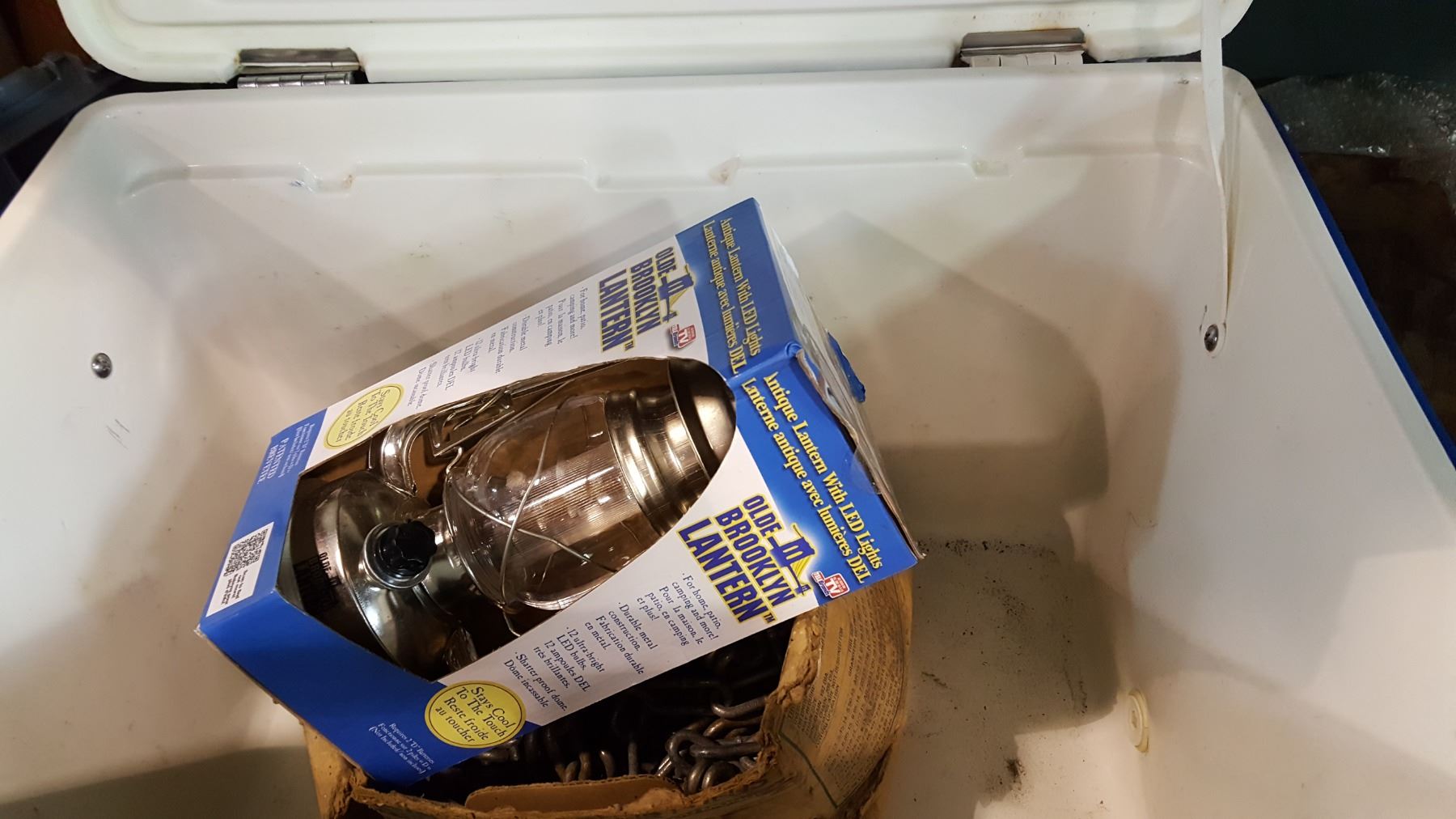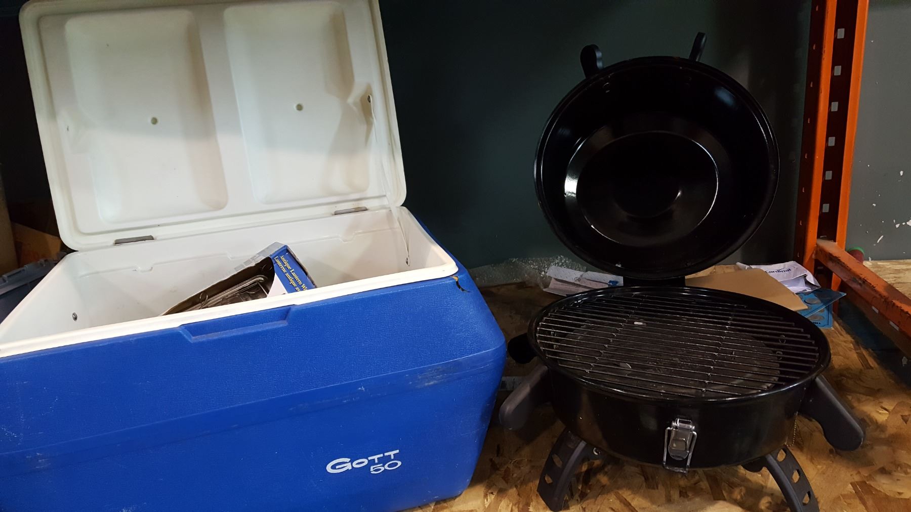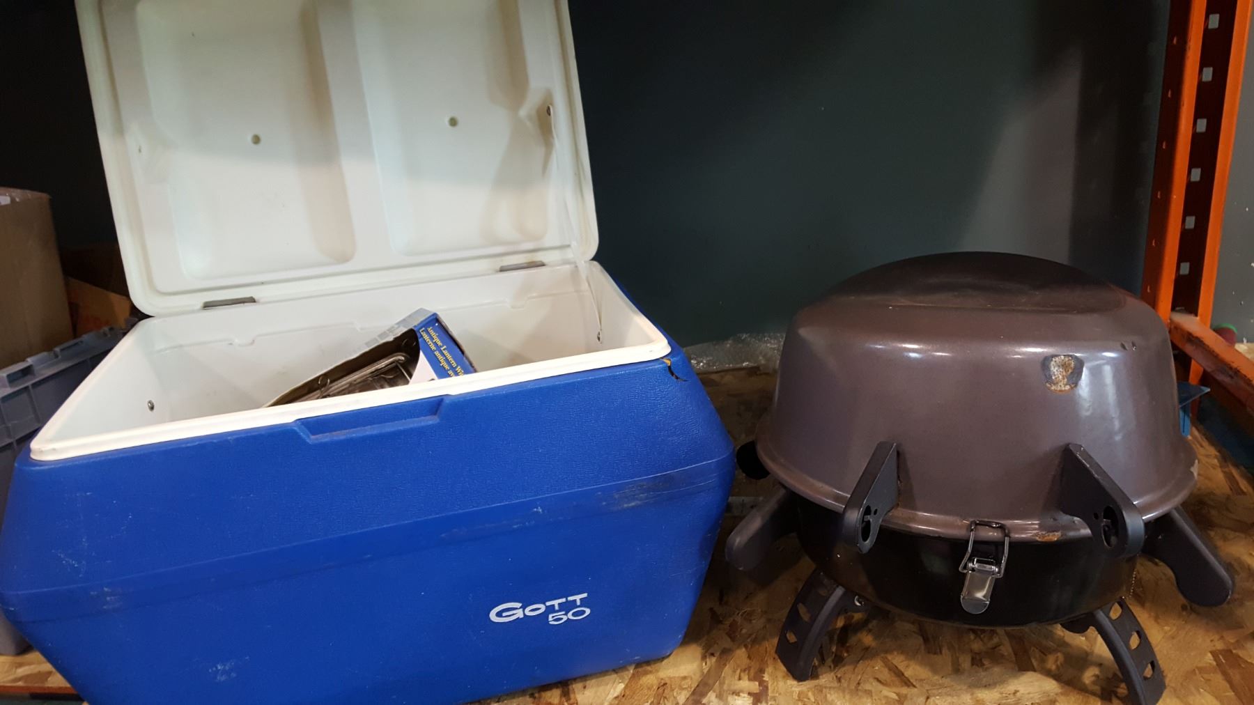 GOTT 50 CAMP COOLER NEW IN THE BOX LANTERN TIRE CHAINS AND PROPANE GRILL