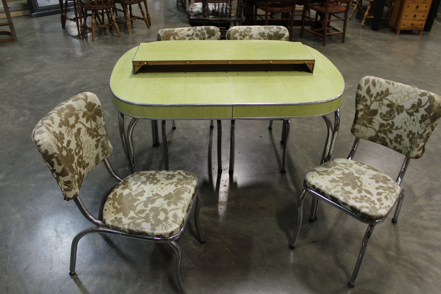 GREEN ARBORITE RETRO TABLE AND FOUR CHAIRS
