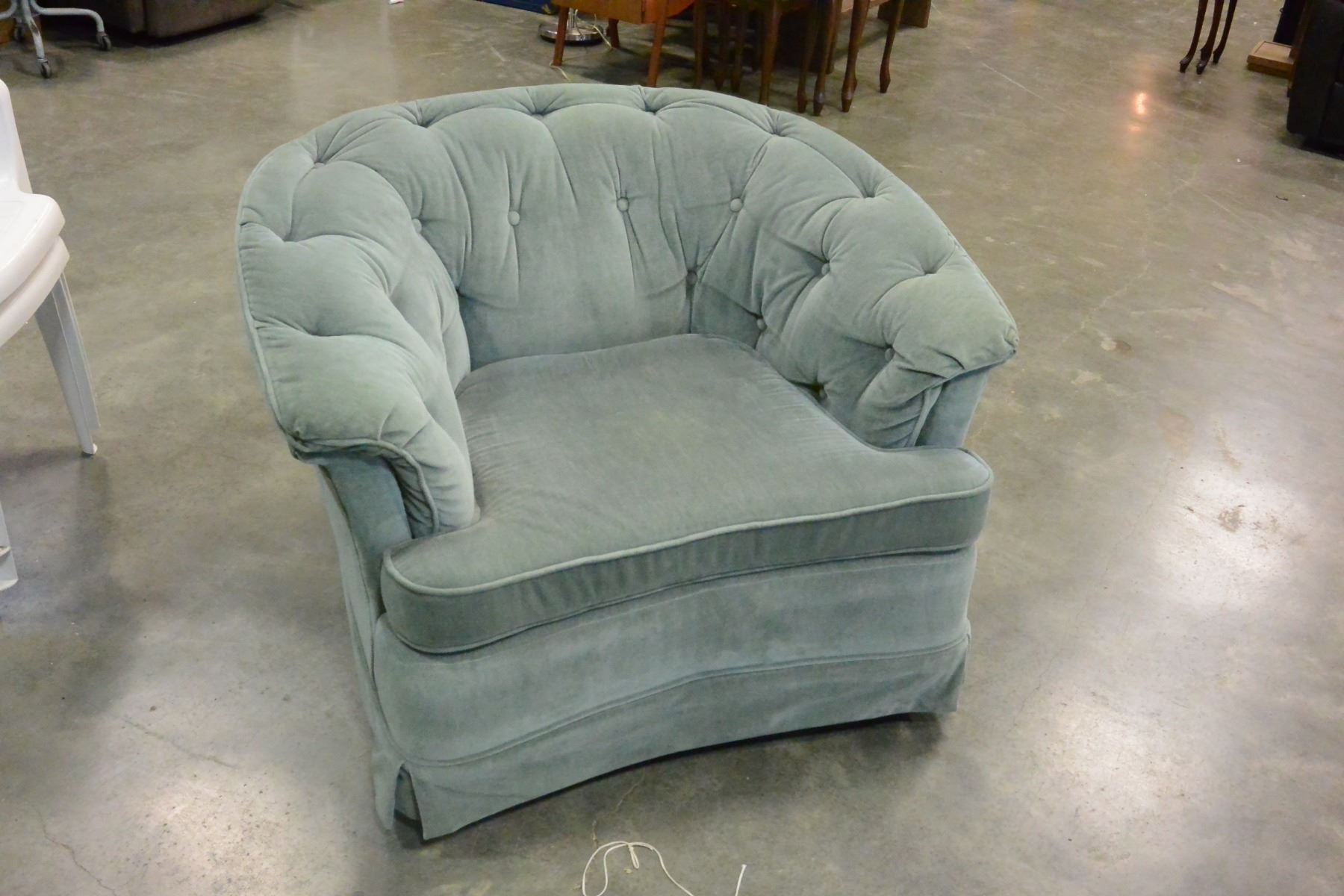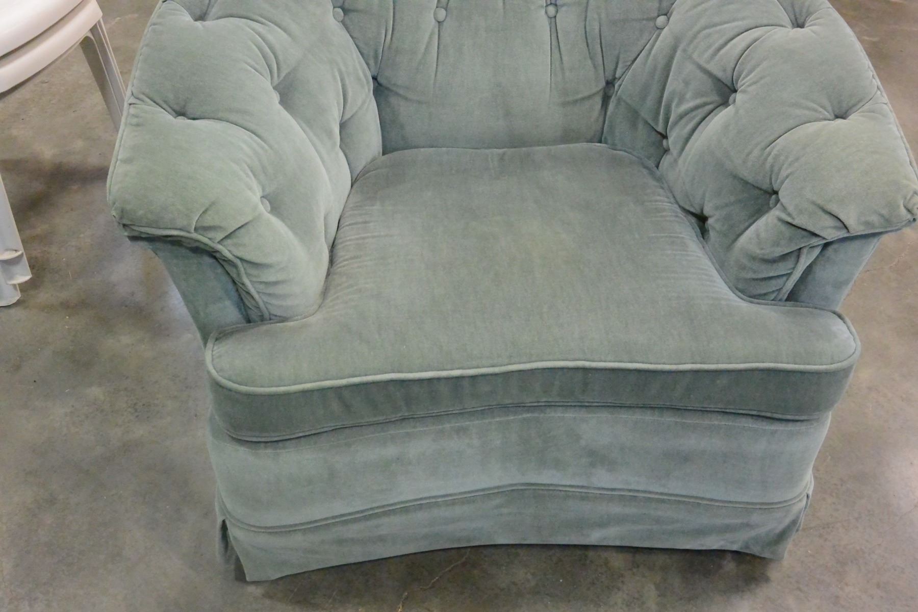 GREEN BUTTON BACK ARM CHAIR