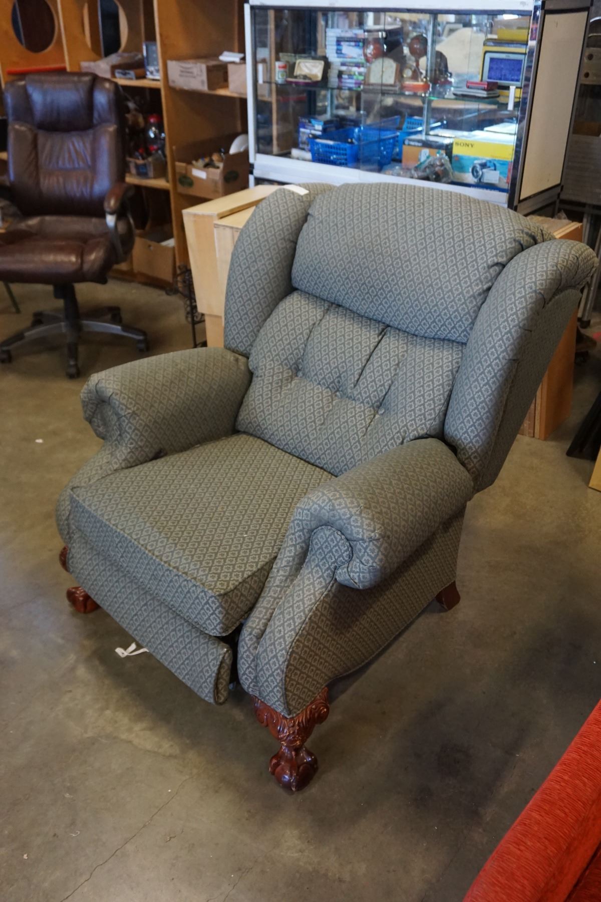 GREEN BUTTON BACK RECLINER WINGBACK CHAIR